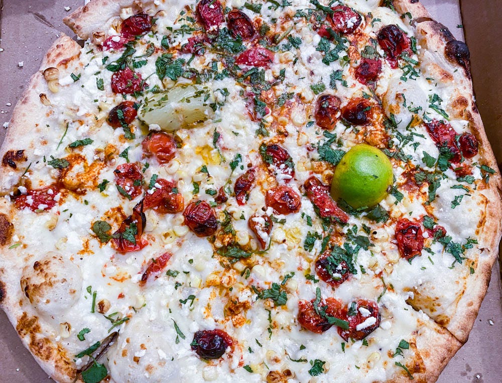 The Birria Mama Mia pizza feels signature already since it showcases their halal beef birria with onions, cilantro, salsa, tomato sauce and a side of beef consomé, in proper birria form to either drizzle over or dip your slice/crust in. Its heavy meatiness needs the squeeze of lime that comes with. De Tu Pina Madre pizza goes for contrast with housemade beef chorizo, tomato sauce, pineapple, pickled jalapeños and cotija cheese. El Elotero pizza may have been my tops, a vegetarian white pizza of fresh corn, roasted cherry tomatoes, cotija, Tapatio salsa, cilantro and lime. Sizes aren’t listed on DoorDash, but I called and small is 12 inches, medium 14, large 16 and extra-large 18, so note that pricing you see is only for the small and each size adds on extra. These are filling, dense pizzas, offering something unique and truly delightful.