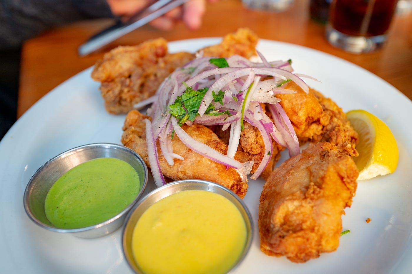 For a departure from traditional American fried chicken, try out the chicken chicharrones from Parada, a trendy Peruvian joint in Walnut Creek. Parada’s chicken chicharrones are tiny, juicy nuggets of dark-meat chicken, coated in rice flour and fried in the traditional Peruvian style.