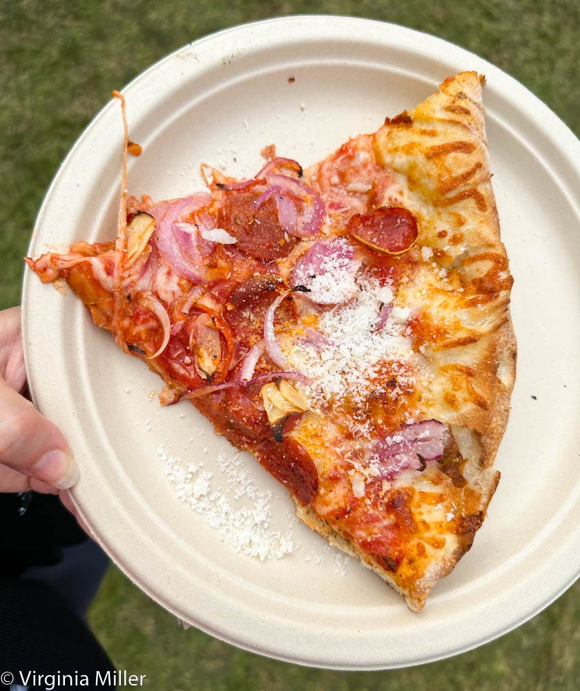I sure was excited about Shuggie’s Trash Pie & Natural Wine being at OSL for the first time this year, but sadly, the dried out, bland slices I got tasted nothing like the addictive, unique pies at their Mission District restaurant. Though I recently had an awful delivery experience with Pink Onion (they delivered only sides and left out the main course pizzas we ordered), this year they held it down for most gratifying slice at the festival (thank God also for Mozzeria’s deaf-owned Neapolitan truck at OSL near “Cocktail Magic”). Pink Mission’s Mission District restaurant has been a sleeper hit for pizza since 2017. Their Magic Mushroom and other slices were available at OL, but it’s their happily red onion-heavy, pepperoni, chili pepper and garlic Pink Alarm Fire slice that perked up a crowd-weary final day at OSL.