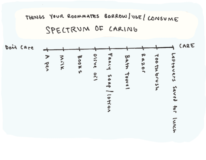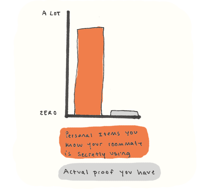 I’ve had 16 roommates in my lifetime. And as great as 90% (maybe more like 80%) of them have been, there are certain, classic issues that inevitably arise when you share living space. Not that I’m faultless, (I was straight-up DELUSIONAL about how often I did the dishes, circa 2009), but I’ve summed up a few of those bits and pieces of roommate life in a set of made-up, crappily-drawn graphs.
