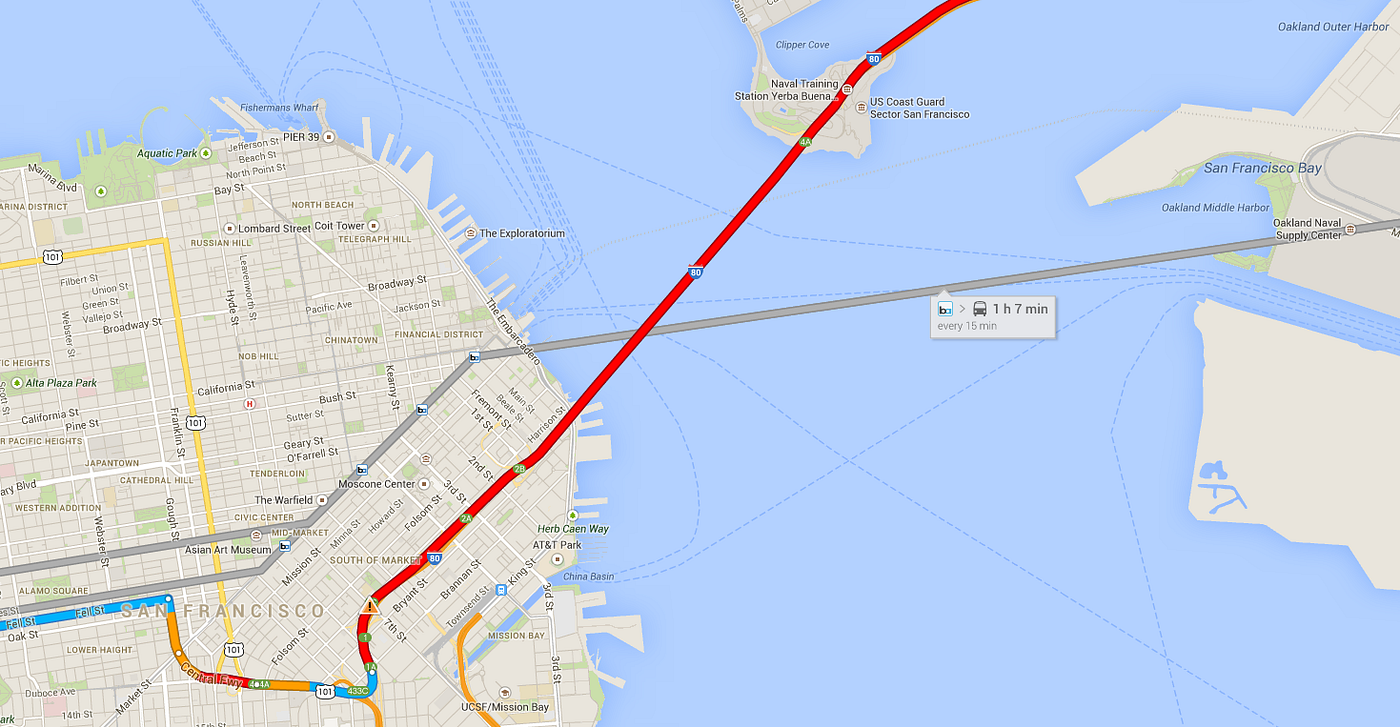 See, I’m dating a guy from San Francisco, and I live in Oakland. And despite the mere 12 miles between our apartments, I’ve been congratulated more than once on sticking to a “long-distance relationship.”