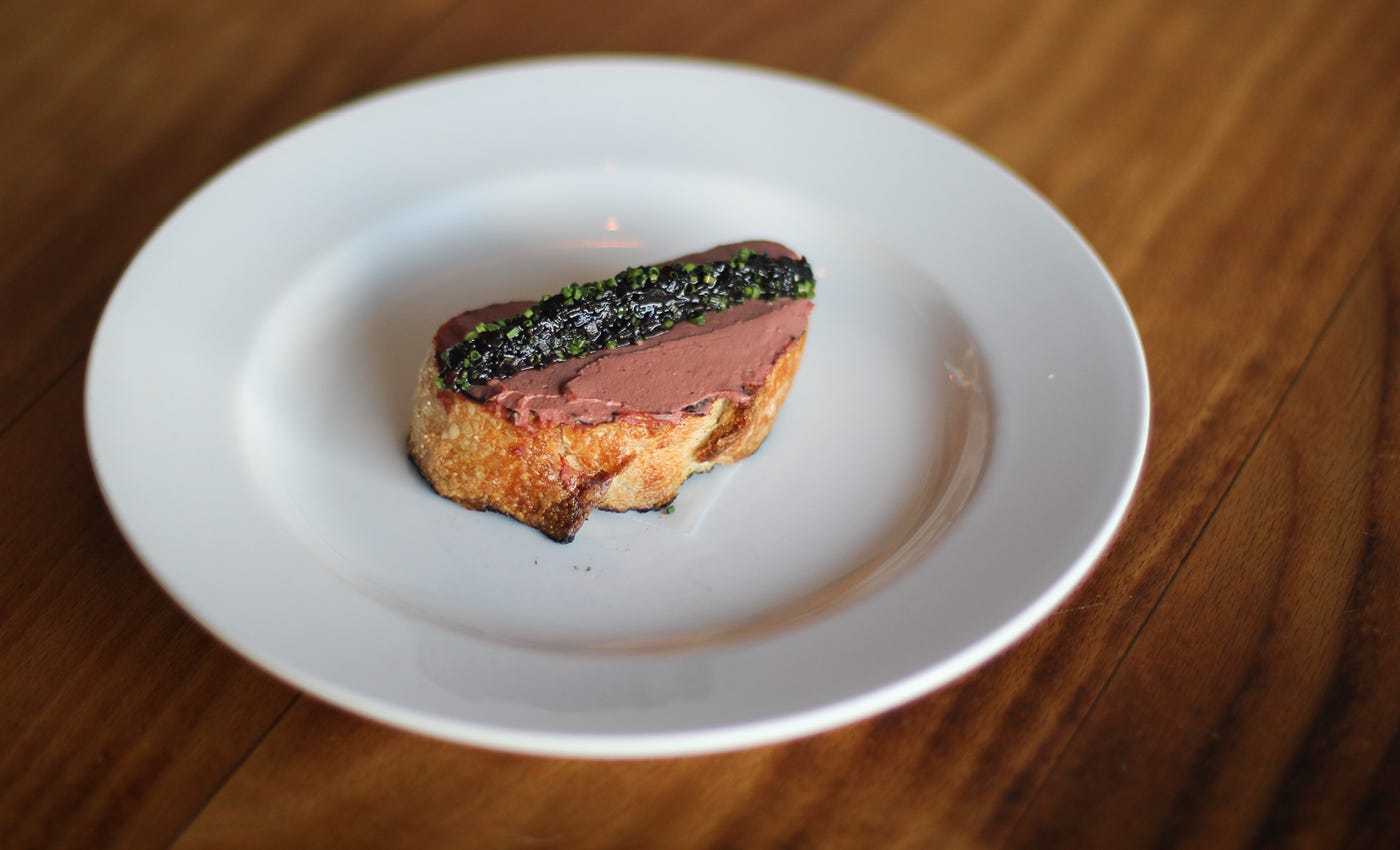 TOAST! FINALLY! Thank God. On the one hand, Evan was really excited that his toast had arrived. On the other, he really wanted to believe that there was butter on this toast — like, so badly. But at the end of the day, you can pretend chicken liver is butter only for so long.