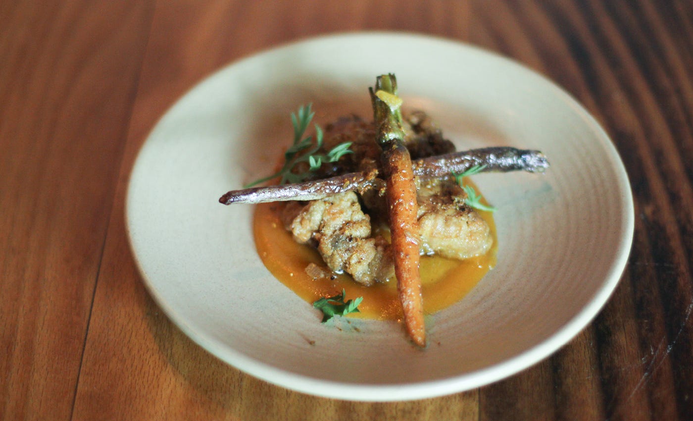 Veal brains, vadouvan, apricot puree, carrot