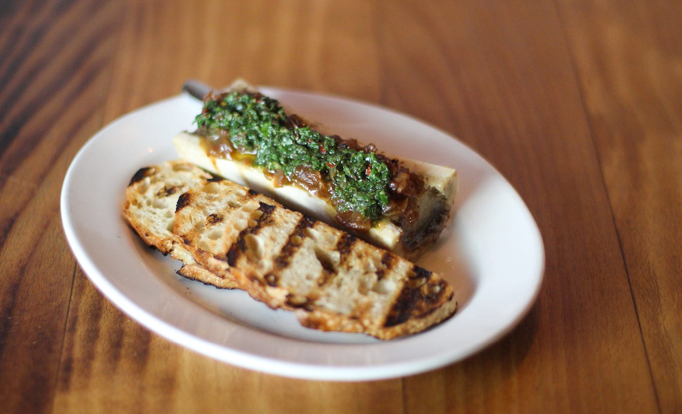 Marrow bone, chimichurri, caramelized onions