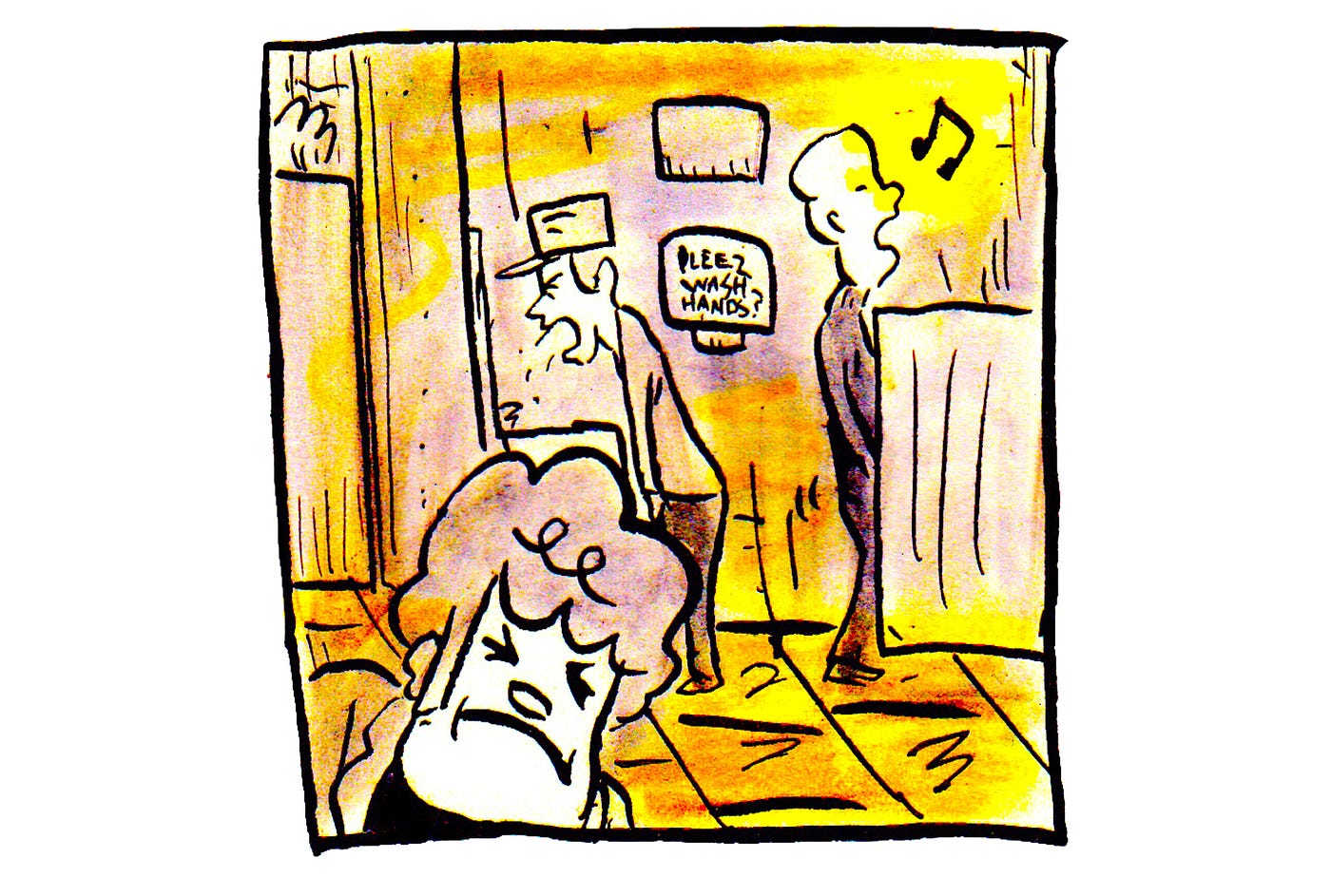 Also, the man using the urinal was singing opera—terribly, I might add.
