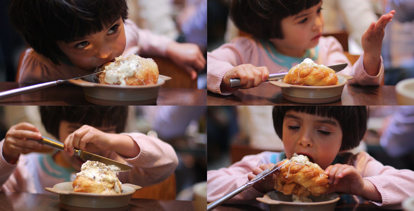 If you can take frantic, heartbreaking sobs as a critique, one can assume this was Della’s least favorite. One bite and she was toppling over the table for her rose soda in a sudden outburst of tears. For those who remember our first “Kid Food Review,” you’ll note that Desmond had a similar reaction to pork belly.