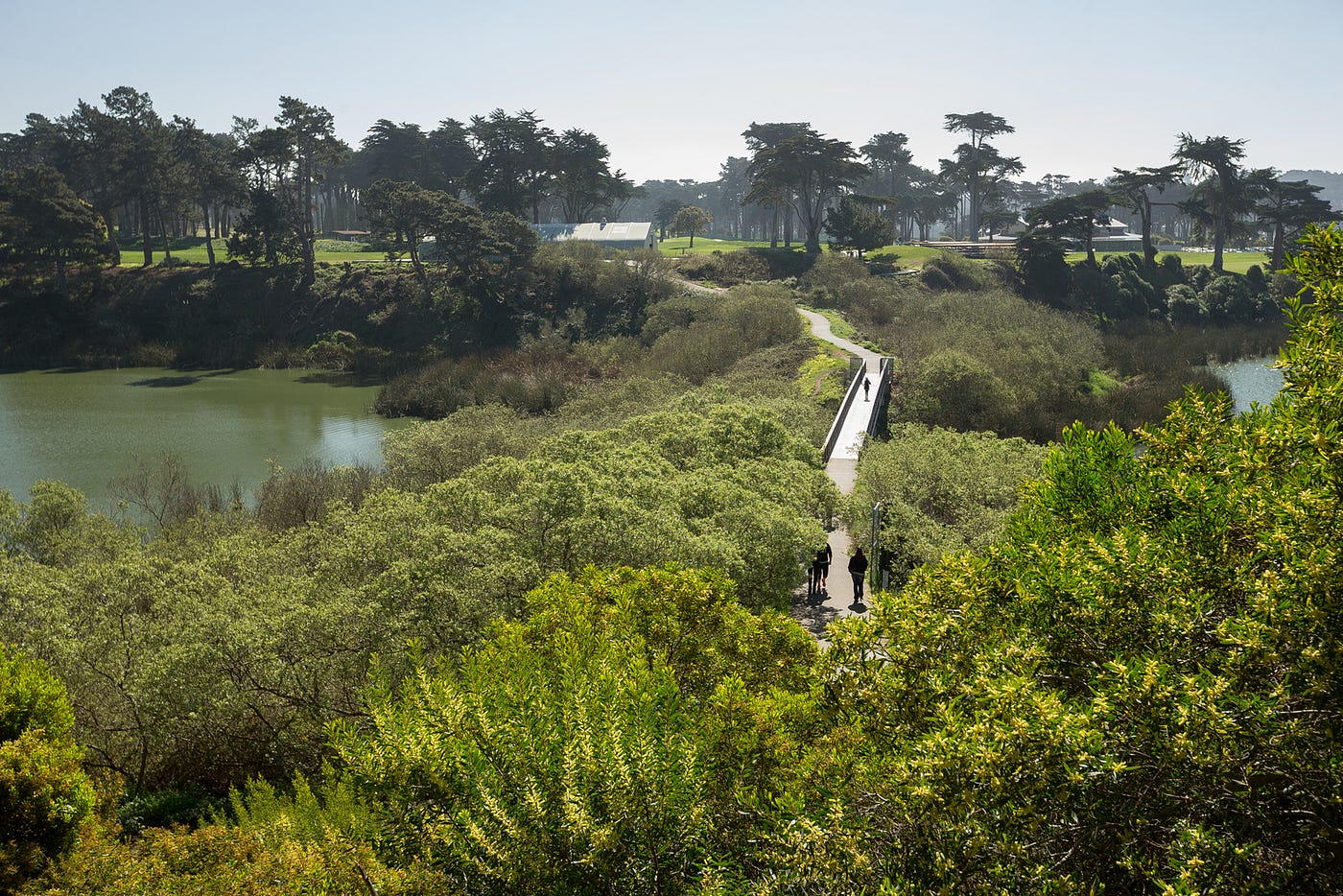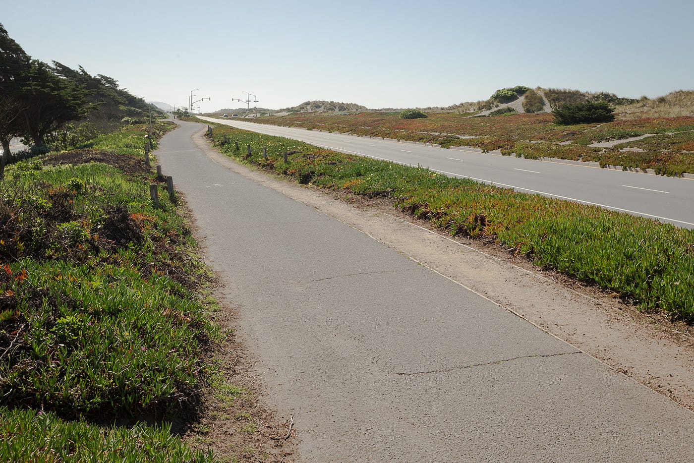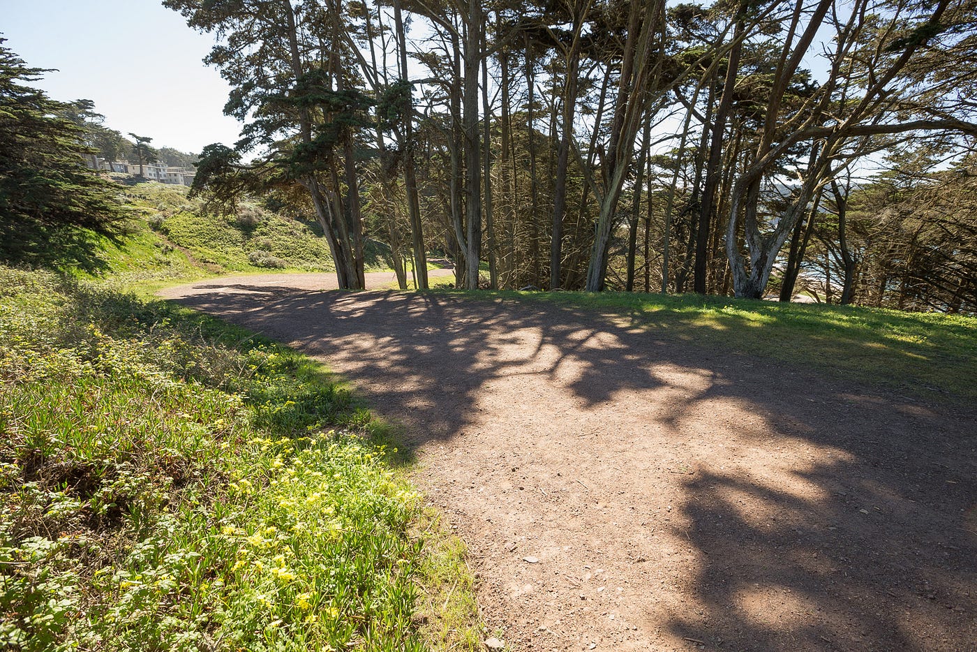 This trail runs along a Cyprus grove, the Presidio Golf Course, and Mountain Lake. If you want a detour, there’s the Merchant Marine Cemetery. This is an easy, paved route that’s mostly flat with one moderate hill.