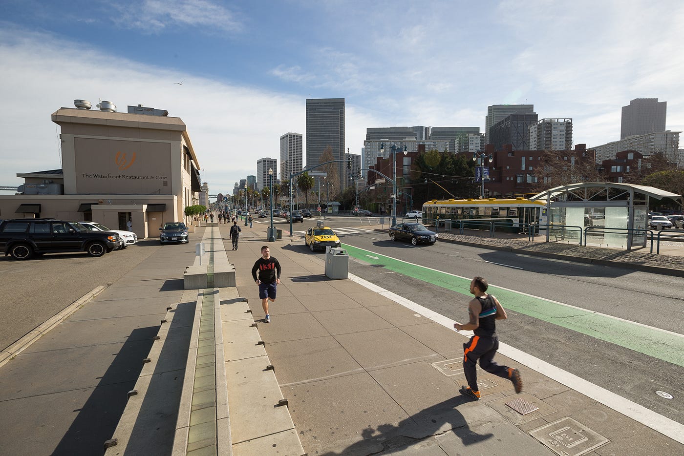 Where else can you see the shoreline, a waterfall, and buffalo? Nowhere, my friends. Golden Gate Park is a classic choice and a good place to bring an out-of-towner for a jog and some sightseeing. As expected, GGP can get packed, so you might want to check ahead to make sure there aren’t any big events à la — God forbid — Hardly Strictly Bluegrass, Outside Lands, or the like. The trails are mostly paved and flat-ish with some moderate hills, depending on your route.