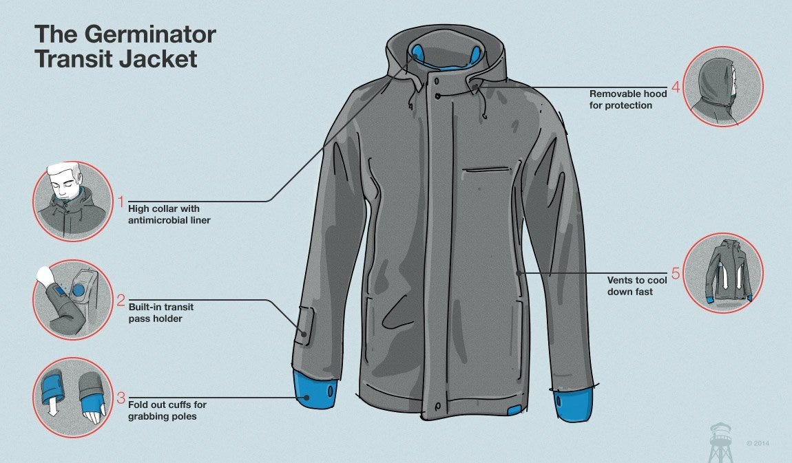 Your commute doesn’t have to be a total germy hellscape if this new invention gets its wish from the crowdfunding fairy. The Germinator Transit jacket is the San Francisco brainchild of Gravity Tank and Betabrand, and you can read all about it on this website.