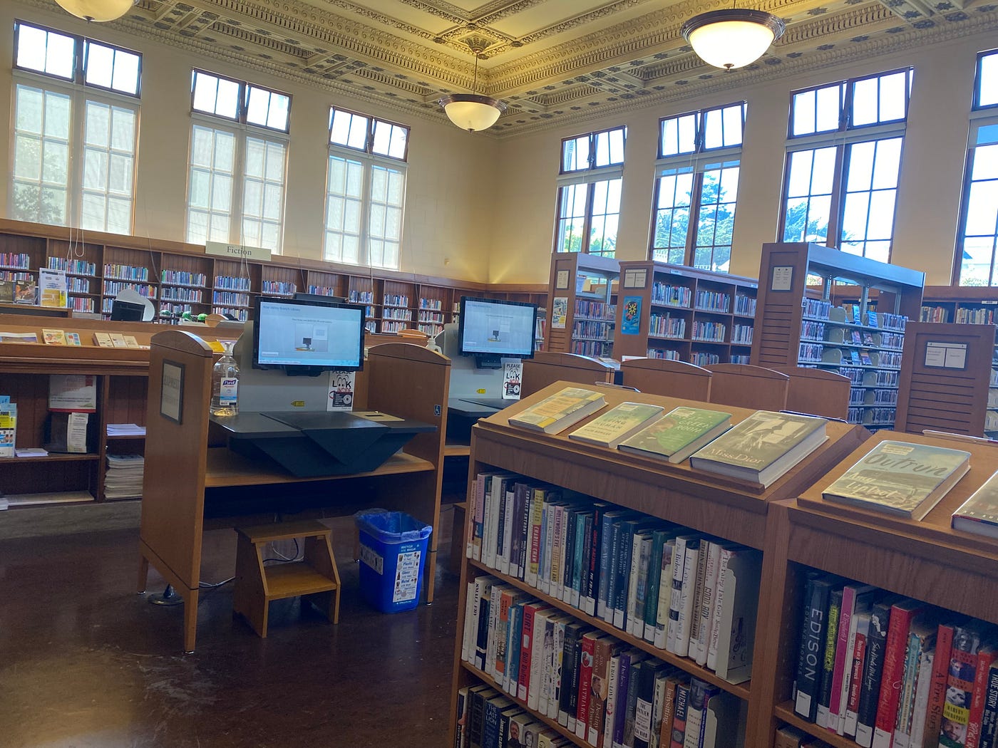 It’s more of a crush, this thing I have with the Main. Presidio Branch was my true love for decades. It took some wrenching away when we finally broke up, after I downsized to the Western Addition’s neighborhood. But one should love one’s neighbor, and Western Addition and I have built a respectable relationship. It’s far more multicultural, as this new love offers affection in Chinese characters that Presidio barely knew. Plus, proud little Western Addition stakes its sixties-funk architectural claim to my affection in defiance of the multitude of branches in the classic Carnegie style. (Is there a Carnegie style? Well, Carnegie money built a bunch of those lovely branches. They’re just a few of the 1,689 libraries Andrew Carnegie built with his accumulated millions. Hardly an admirable man, but you’ve got to appreciate all those libraries.)