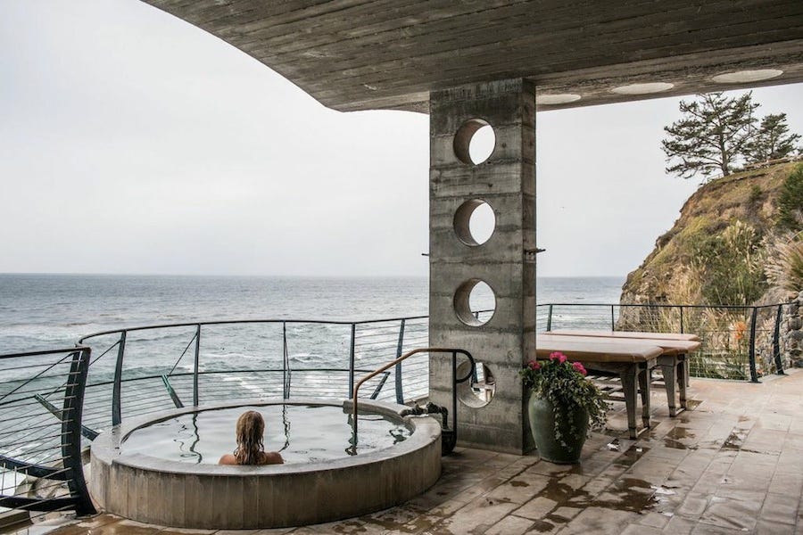 ● X factor: Oceanfront hot tubs with breathtaking views of the Big Sur coast.