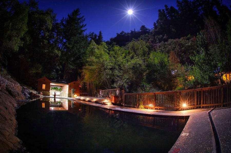 Beyond a dragon gate lies this beloved New Age stronghold tucked in the scenic foothills of the Clear Lake countryside. Spread over 5,000 acres, the village-like resort encompasses hot spring-fed pools, eateries, stone labyrinths, workshop space, and guest room domes that resemble something from Woody Allen’s Sleeper. It’s probably the crunchiest destination on this list. Eavesdrop at the pools and you’ll hear folks chatting chakras and mulling modalities.