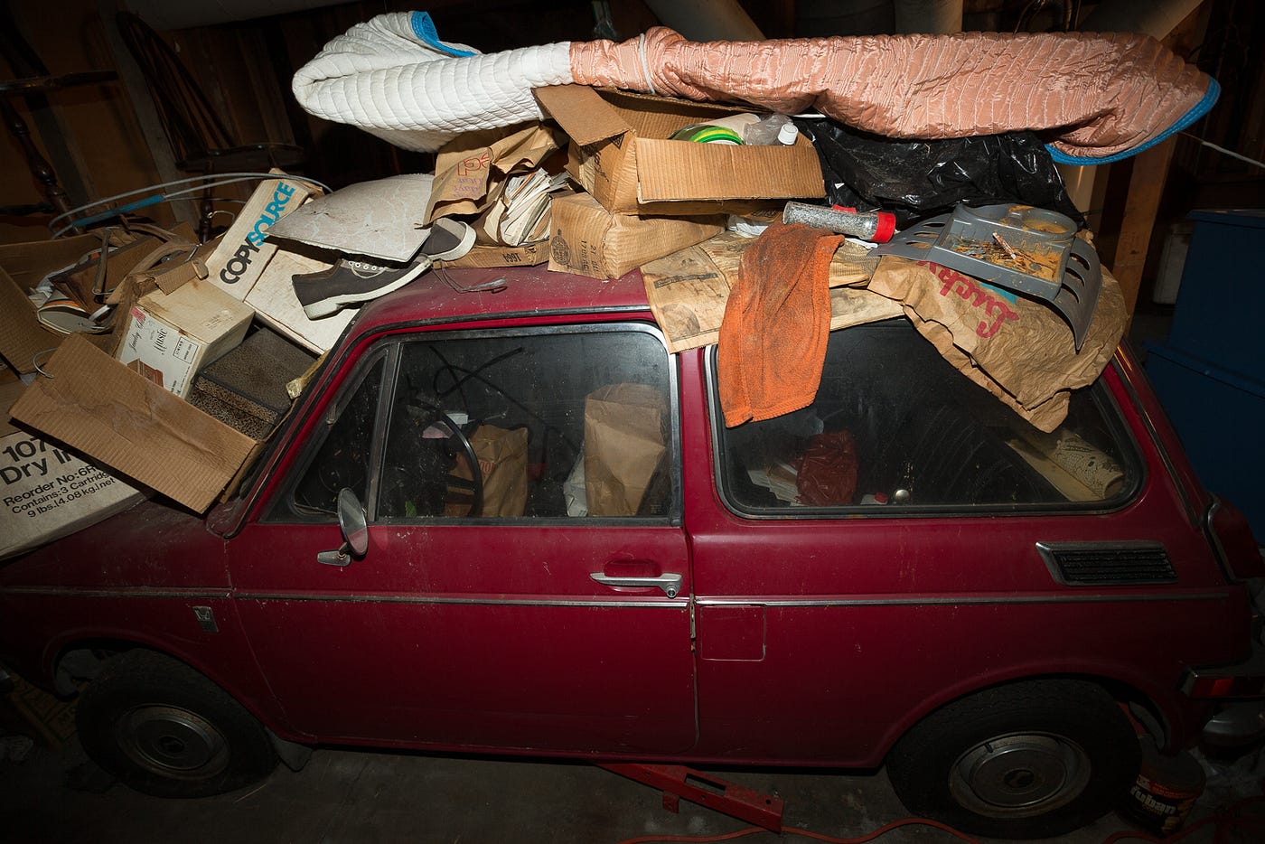 The previous owner had died, and his family hired Jon to clean out the house. Jon, in turn, hired a crew of workers to help sort through the piles. By the time I showed up, his two trucks were already half full, and the house was still overflowing with things. It was bizarre walking around someone else’s house taking pictures of their belongings. Over the course of that afternoon, I slowly built a picture of who this person was. I found boxes of family photos holding up toolboxes in the garage. Whole rolls of film were dedicated to an orange cat back in the ’80s. Old letters dating back as far as 1960 told little stories about everyday life. I walked past a buried Honda in the garage twice before I even noticed it was there. It was like an archaeological dig, where you discover more the deeper you go. I spent that day teetering between fascination and sadness.