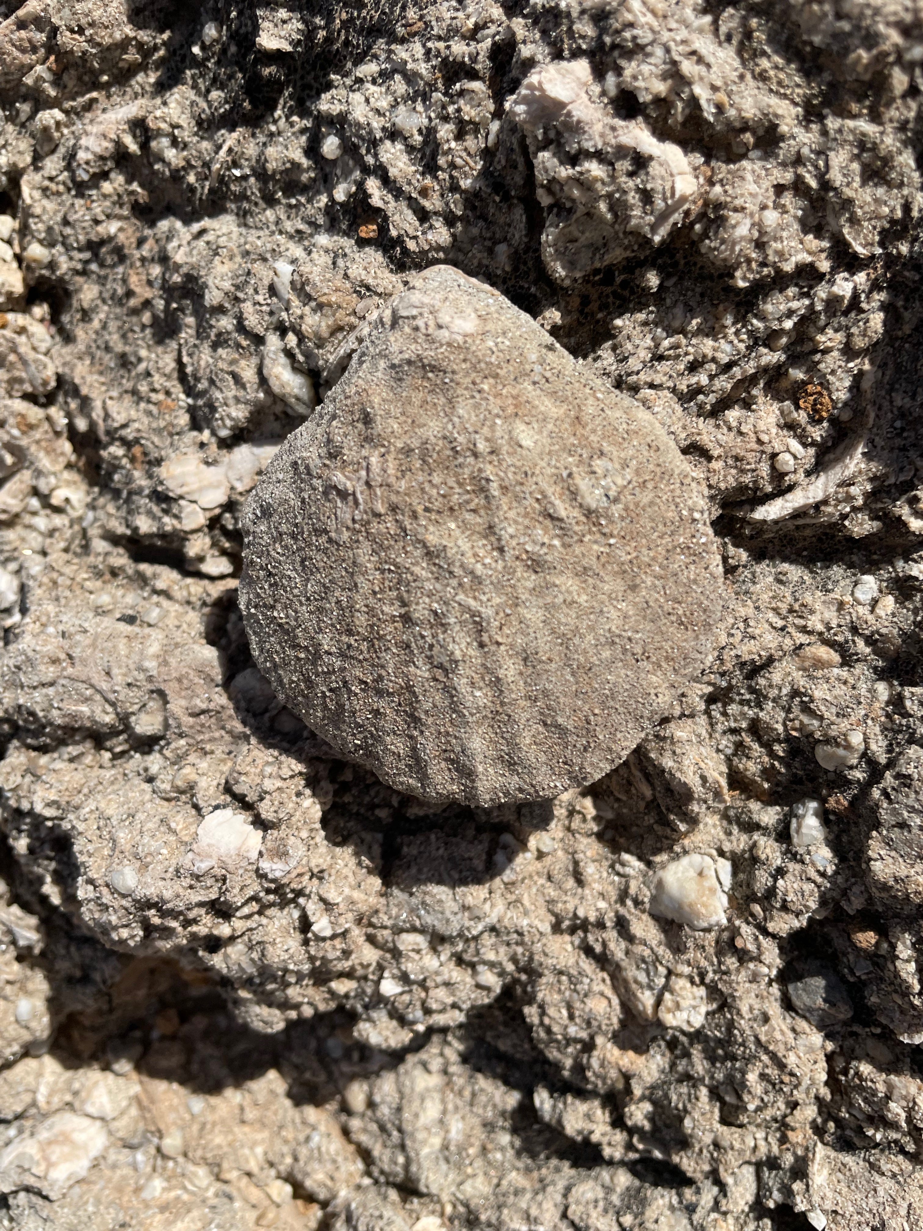 I was glad for the vaulting sky instead of mud ceilings as we started down the sandy wash. Before long we encountered abundant and luxurious proof of ancient sea beds. Paul and Carol directed our eyes to fossilized seashells, the remains of marine life. There were gastropods, oysters, spirals, chambered nautilus shapes, perfectly formed sand dollars, vestiges petrified and encrusted in cement-hard walls of coarse sand and silt. We were looking at the ancient artistry of the Colorado River and the once tropical inland Sea of Cortez, coupled with deep time, pressure, and the uplift of our famous San Andreas Fault.