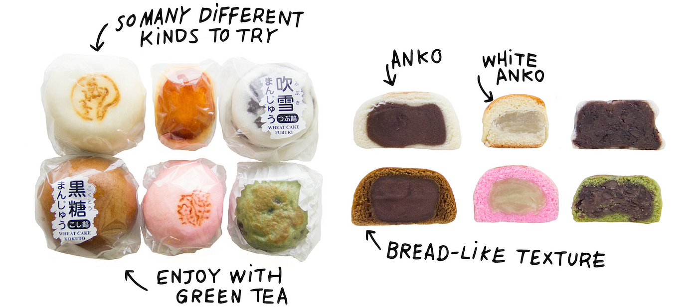 Manjū is one of the most popular traditional Japanese delicacies. Usually enjoyed along with a cup of tea, manjū comes in an unbelievable variety of flavors, shapes, and colors, some being shaped like leaves or rabbits. Most are made from flour, rice powder, and buckwheat (resulting in a spectrum of textures: from sticky and mochi-like to a more dense, bread-like texture) and filled with anko, a slightly sweet and smooth red-bean mixture.