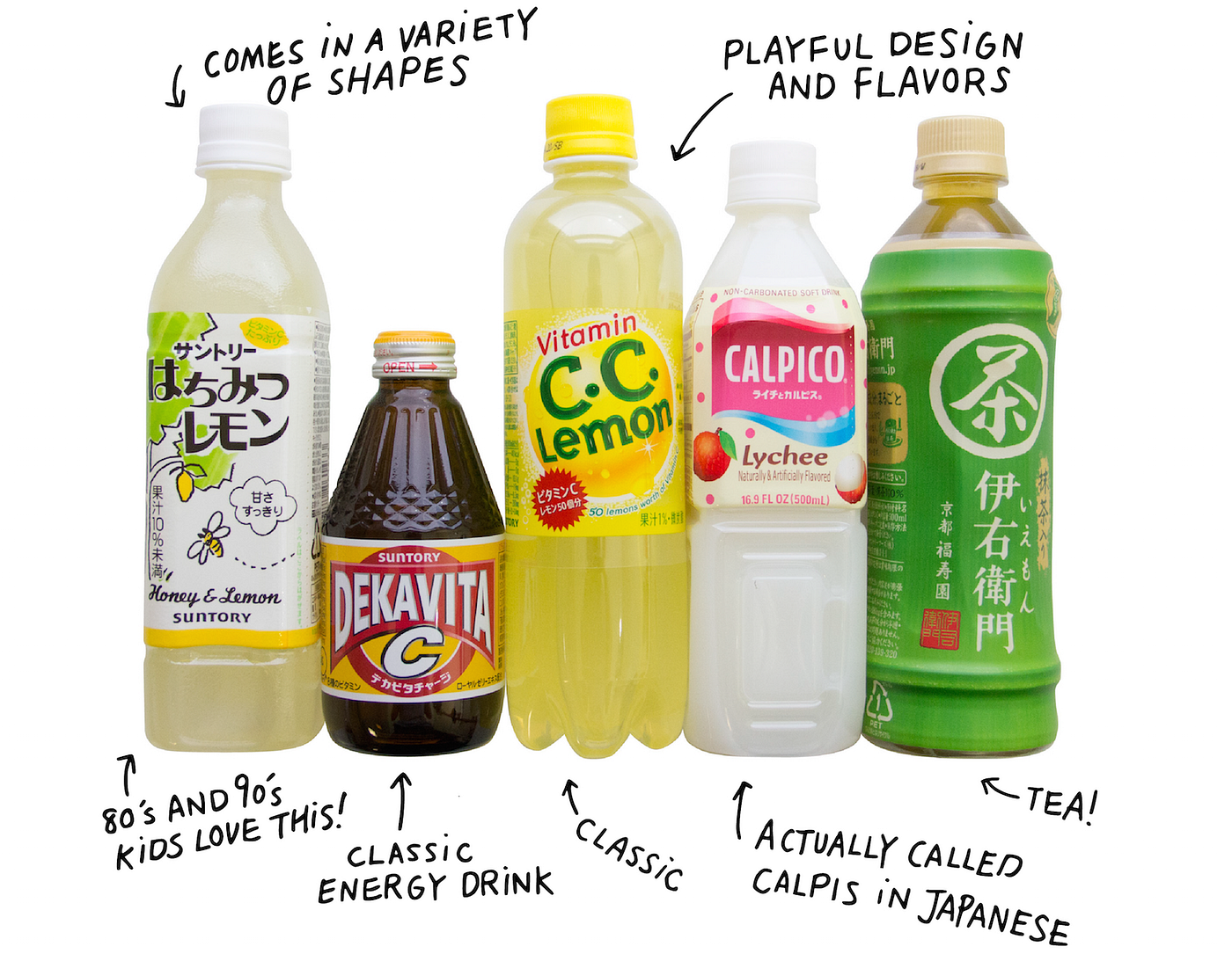 Japan is known for having an endless variety of beverages. Like the snack aisle in Nijiya, the drink aisle is also something you don’t want to miss. There are really no tips to be given — just grab a few and enjoy them until you find your favorite. Some favorites in Japan are Suntory Hachimitsu Lemon (honey lemon), Dekavita C (a Japanese energy drink), Suntory C.C. Lemon (a classic), Calpico Lychee, and Iyemon green tea.