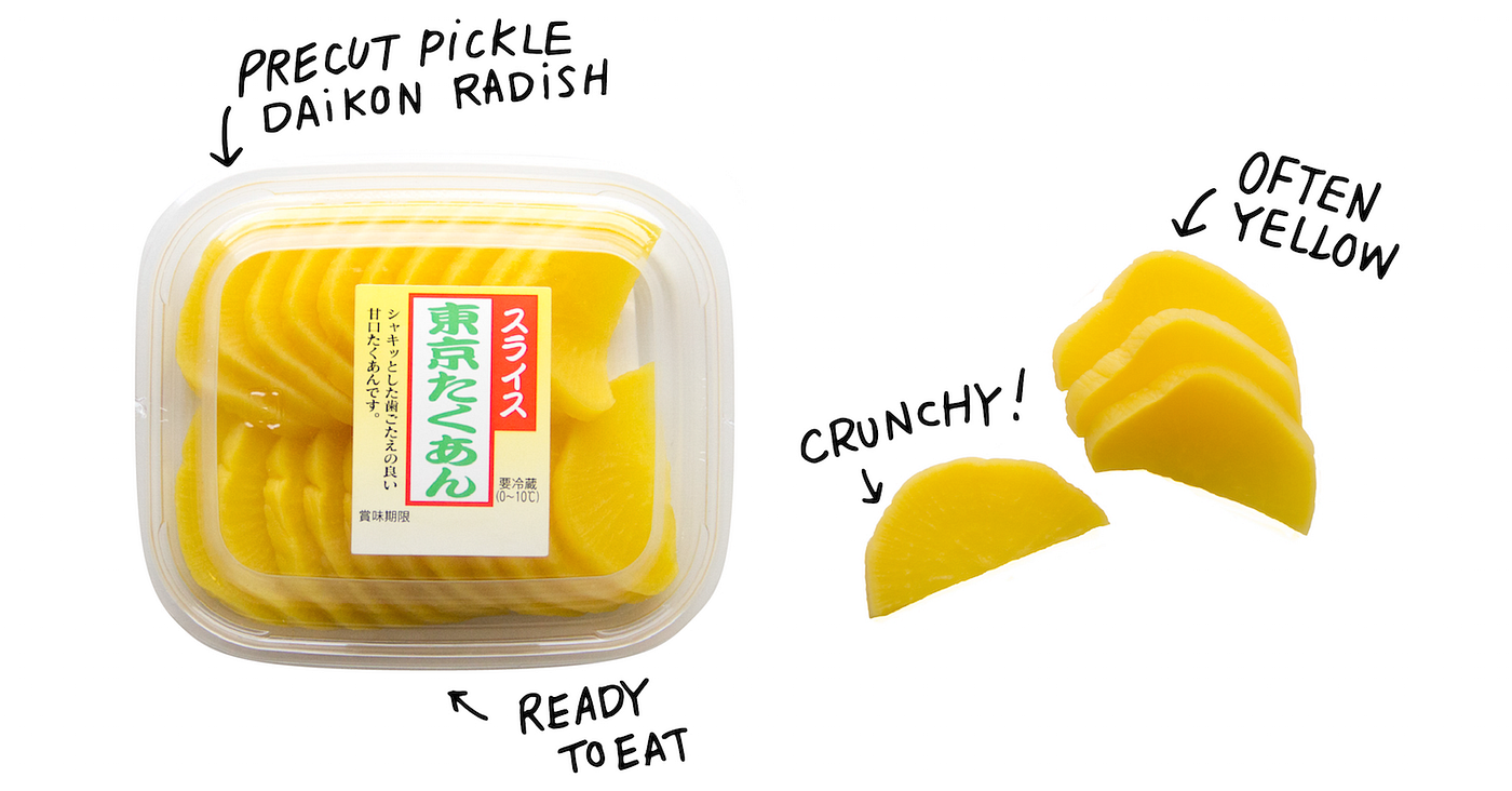 Instructions: Store it in a refrigerator and enjoy it cold. Eat it along with rice and whatever other Japanese foods suits your desires. You can buy it pre-sliced like this or buy the entire pickled daikon radish and slice it up yourself.