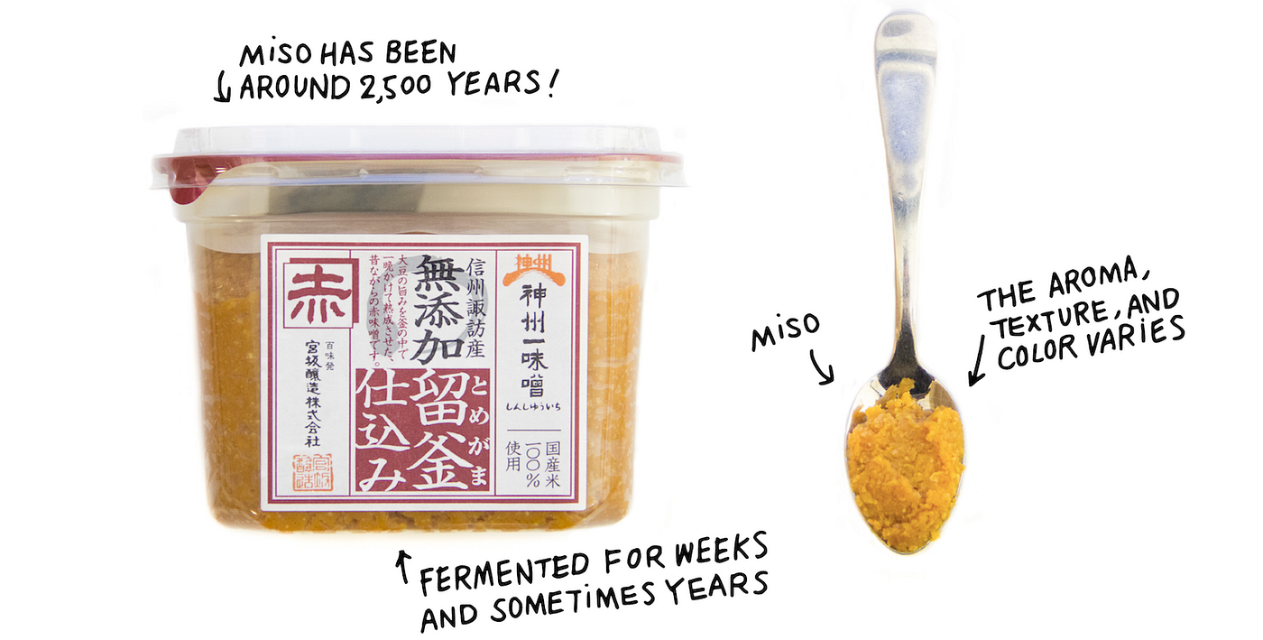 Contrary to popular belief, miso itself isn’t the miso soup. It’s a paste that can be cooked into a variety of dishes, but its most common form is in miso soup, which is usually eaten as part of breakfast in Japan and has roots dating back to more than 2,500 years ago. Similar to the process of making nattō, the process of making miso includes fermenting beans and other ingredients such as salt and koji (a mold starter). Although it’s usually eaten on its own in the US, the Japanese almost always have it along with a bowl of rice. Miso soup and rice are like BFFs that are never apart.