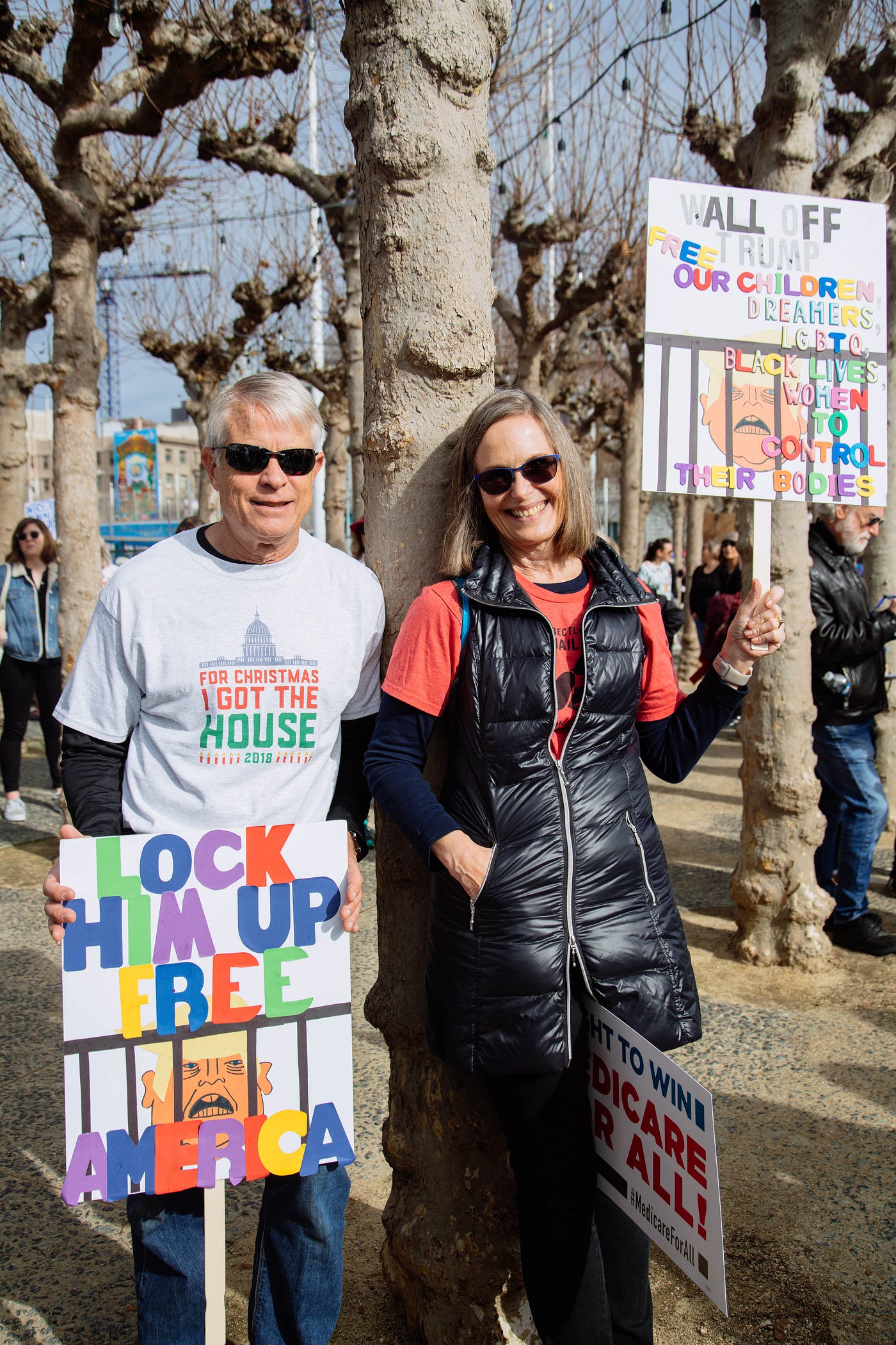 “John and I went to the Women’s March in DC in 2016 and have attended every San Francisco one. We have been working nonstop to try to change the direction of the country. I was on the board of Planned Parenthood for years and believe in a women’s right to make a medical decision without the interference of the government. I’m here today to support Planned Parenthood and women’s rights!”
