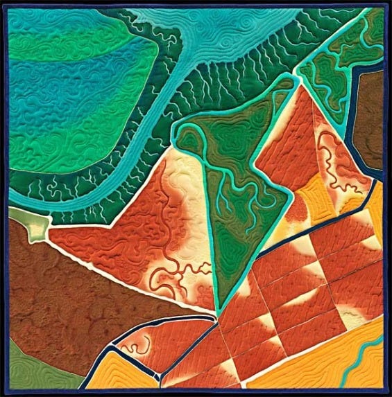 Prepare to be blown away. The images below are of quilts! These amazing works of art were made by artist Linda Gass, who depicts the stunning aerial views of the wetlands of the Bay Area through fabric art. You might recognize these strangely colored pools of water — the salt ponds — that were once commercial salt production areas and are now protected ecosystems. Gass uses handpainted silk crepe de chine to craft her beautiful quilts.