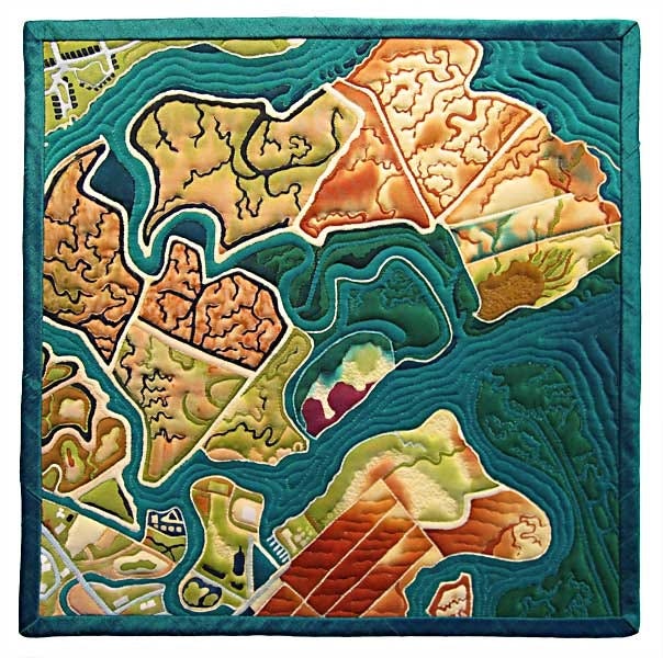 Gass makes these quilts to “express hope for restoring the salt ponds to wetlands.”