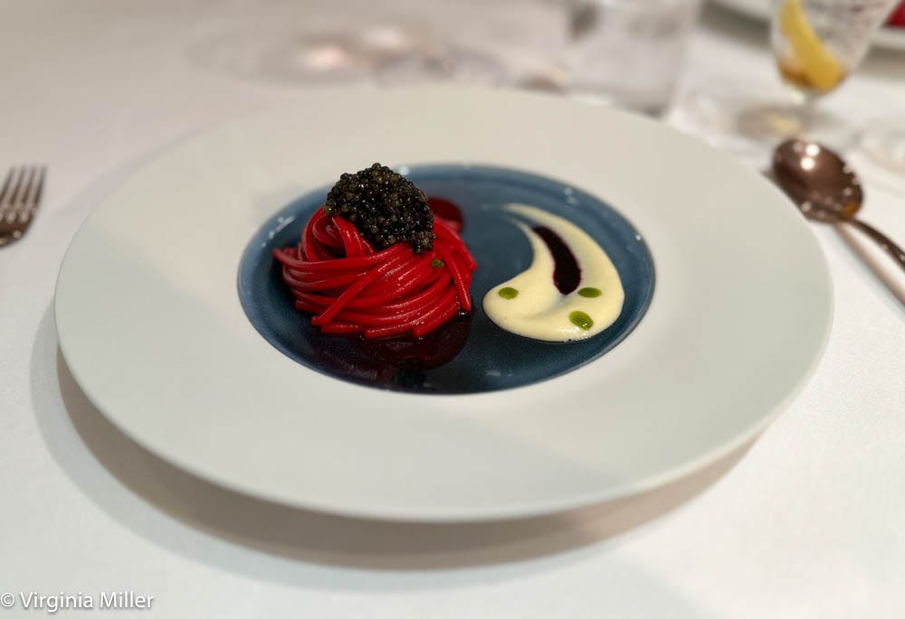 The Tusks smartly offer the full 8-to-10-course ($360) dining room menu, and in the gorgeous new bar and lounge area, a shorter four-course tasting ($270) and a “Salon” menu with a la carte dishes, including Michael’s legendary, vivid red beetroot spaghetti in yuzu, vodka and Tsar Nicoulai caviar. I’m especially excited to hear they plan on opening for lunch. With all that light and view of the Transamerica Pyramid, it will recall the many Michelin-starred greats in Asia and Europe that serve lunch and help me out when I have to pack in restaurant research on those continents.