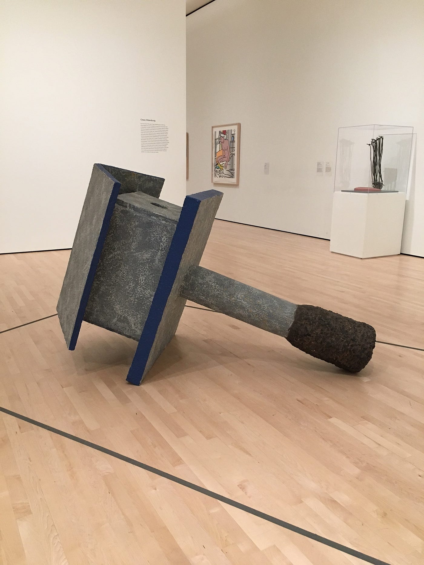 I want to believe Oldenberg would be pleased. While I never met him (though I did happen to see him at the Guggenheim in Manhattan one day and edged around nearby as if we were really best friends) I think anyone who could create great art from a minds-eye view of hamburgers, typewriter erasers, men’s ties, and birdhouses — just to name a few — had to have had both genius talent and a whimsical view of the world.