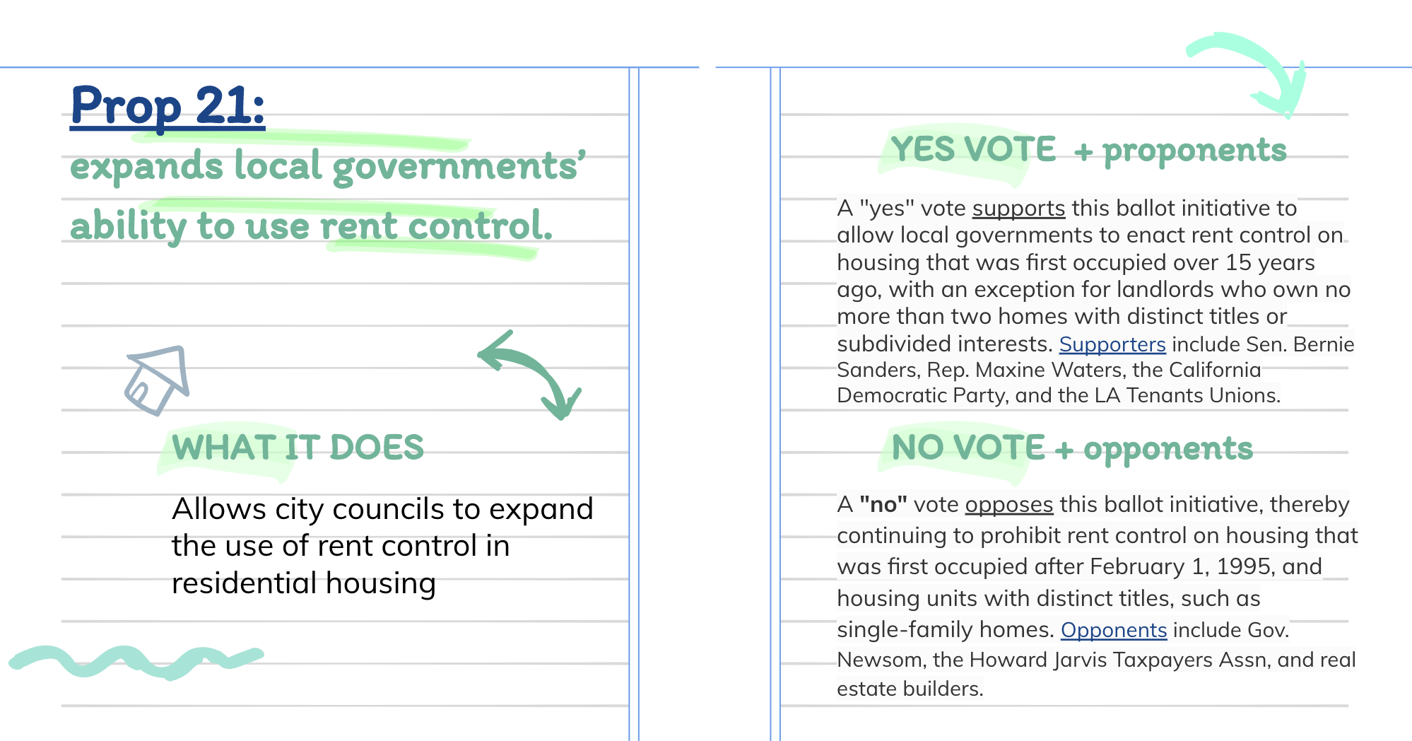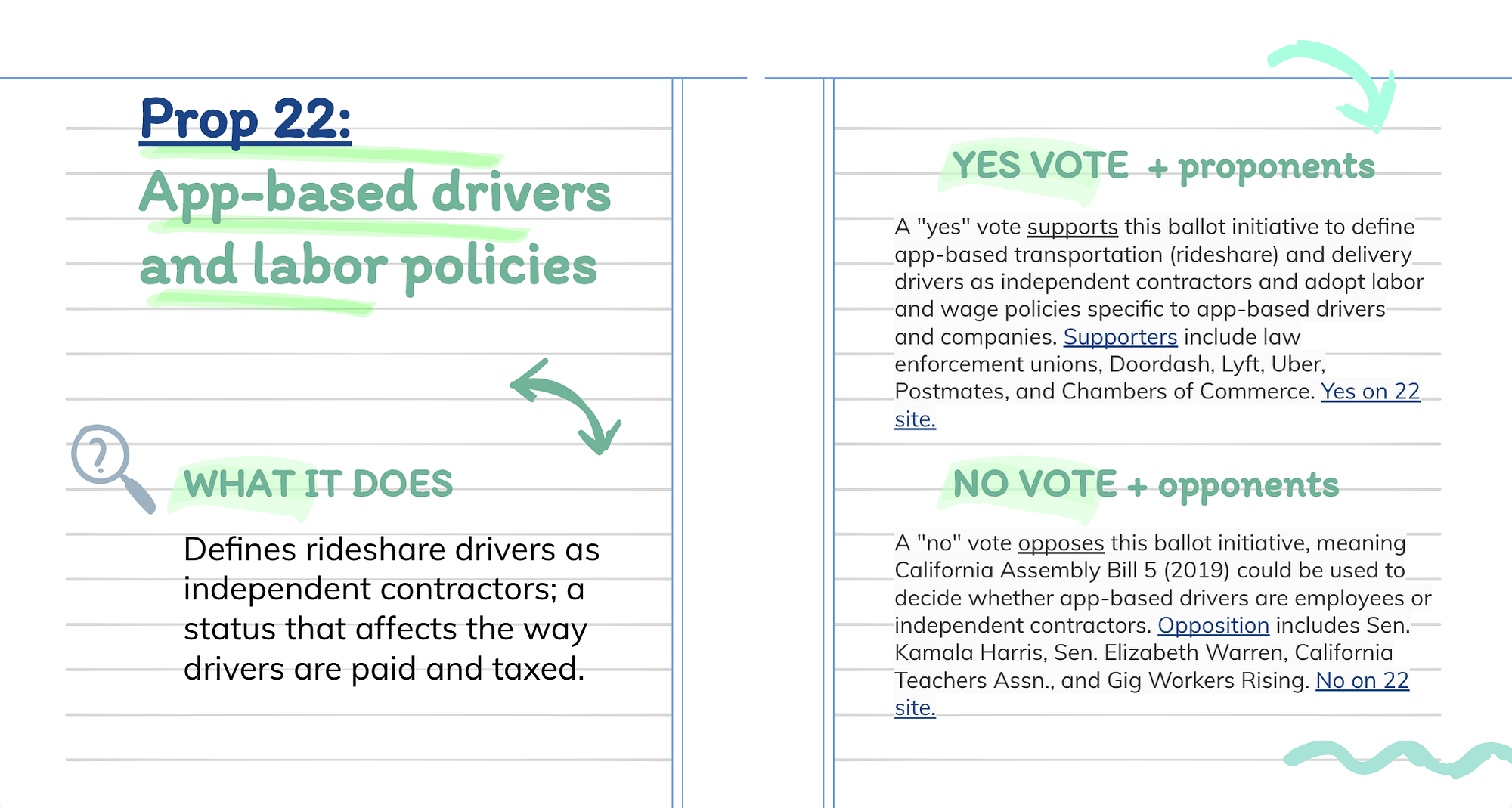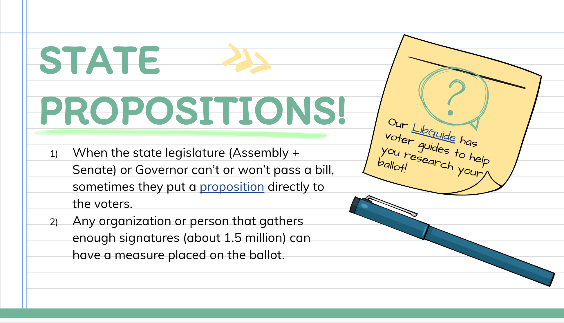 To get you started, we’re publishing this guide by California high school teacher Elizabeth Vitanza. This is a good way to get a feel for what the measures are proposing, as well as who is for them and who is against them. We have also provided additional resources at the bottom to continue your research.