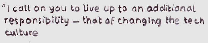 However, I’ve detected within that tech subset a troubling position — that of the tech apologist. To be sure, the overall criticisms against the tech industry could be more nuanced. Not everyone in that community is fundamentally failing San Francisco, and I can understand feeling defensive when under attack. But I call on you, my enlightened tech brothers and sisters, to live up to an additional responsibility — that of changing the tech culture from the inside.