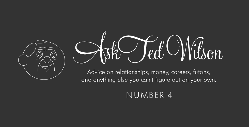 Hello, and welcome to Ask Ted Wilson, my weekly advice column where readers ask me questions about absolutely anything, and I tell them what to do. If you have a question you would like answered please write to me at iamtedwilson@gmail.com or leave me a voicemail at (617) 379–2576. I hope to hear from you soon!