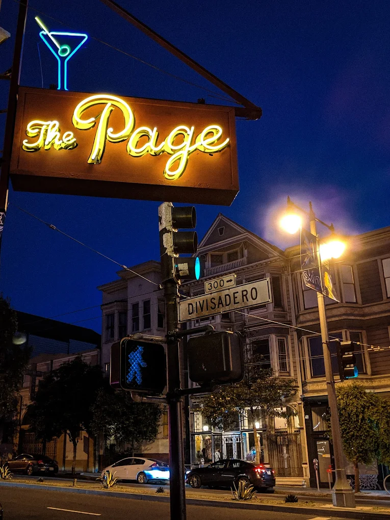 The Page is a cash-only dive bar with 22 beers on tap, a whiskey-of-the-month special, carpet on the floor, and oil paintings instead of TVs. During the pandemic, they built a parklet that hilariously recreated the bar's interior outside, and they've kept the outdoor live music going since.