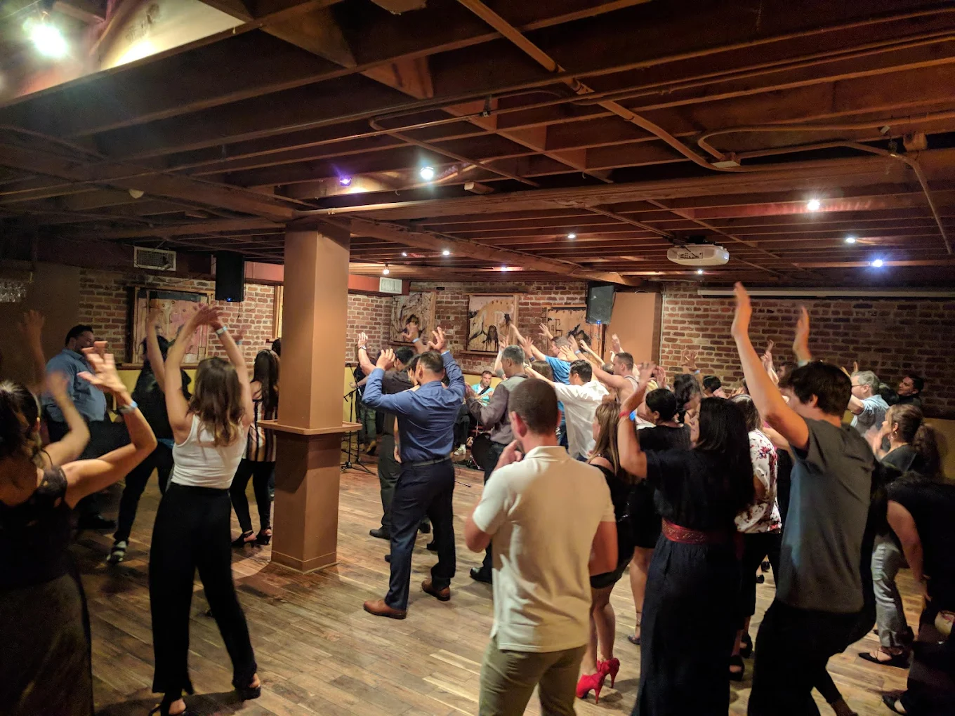 Live salsa bands: Friday and Saturday nights, starting at 9:30 PM. Salsa lessons with Ava & Rodolfo at 7:00–7:30 PM. Bachata DJ on Thursdays. Cover $15–$20 starting at 9 PM. Dress code enforced (no baseball caps, sneakers, or sportswear).