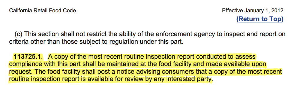 Maybe the restaurants that failed this simple test had feigned ignorance and hidden poor inspection reports, or maybe they just aren’t aware of the state law.