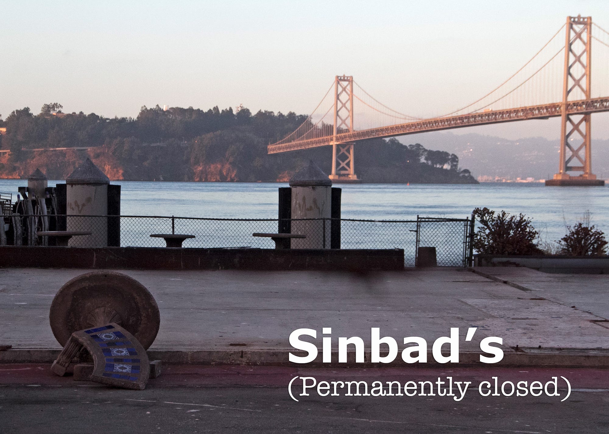 Google Maps guided us to the now-vacant Pier 2, where Sinbad’s was a year ago. The app lags behind the times, listing the menu, hours and celebratory photos of what’s now just a place of “used to be.” The restaurant hadn’t so much closed as been disappeared, like ash shaken off the stub of a cigarette. Nothing but a few cracked tiles and one broken table on a slab of empty concrete. But with a little Internet archaeology, you can still find reviews for the joint.