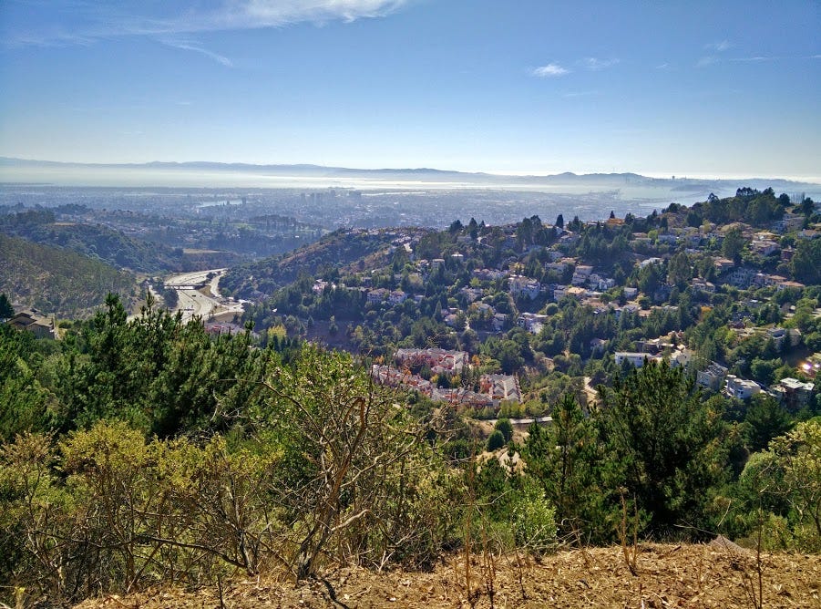 The view from Grizzly Peak Road in the Oakland Hills, looking west