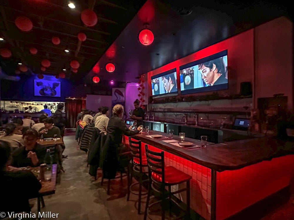 This week, I share experiences at two newcomers playing with the boundaries of Asian cuisine. One is a pop-up turned hip, new Mission district restaurant hidden behind a graffitied wall, Bruce Lee films on two TVs above the bar, striking paintings of birds. The other is a fluorescent-lit, Tenderloin spot, half underground, roomy but utilitarian in design. The former just opened early January 2023, the other two days before Christmas 2022. They are dissimilar in most ways but for their surprising interplay of Asian cuisines.