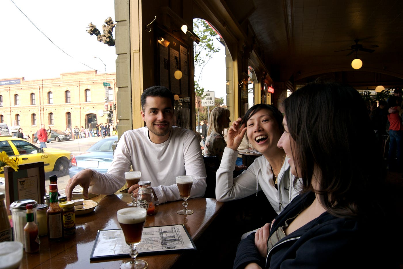 You still can’t eat at the bar, and the Irish coffee might not be the best you’ve ever tasted. But drinking it from the bar, with your jacket hung from the little hook beneath the bar’s ledge, shoes kicking softly at those gorgeously variegated algae-green, white, and copper tiles as you rest comfortably on a stool, staring at the many decades of paraphernalia on the walls and all that old polished oak; the cable car rattles by, barreling up Hyde’s steep slope, bell ringing, a gaggle of tourists oohing and aahing, that steel screech and lovely whine that evoke the inimitable magic that used to make this city really trundle and whip with pizzazz; and you think to yourself, “Maybe there really is no better Irish coffee than this.”