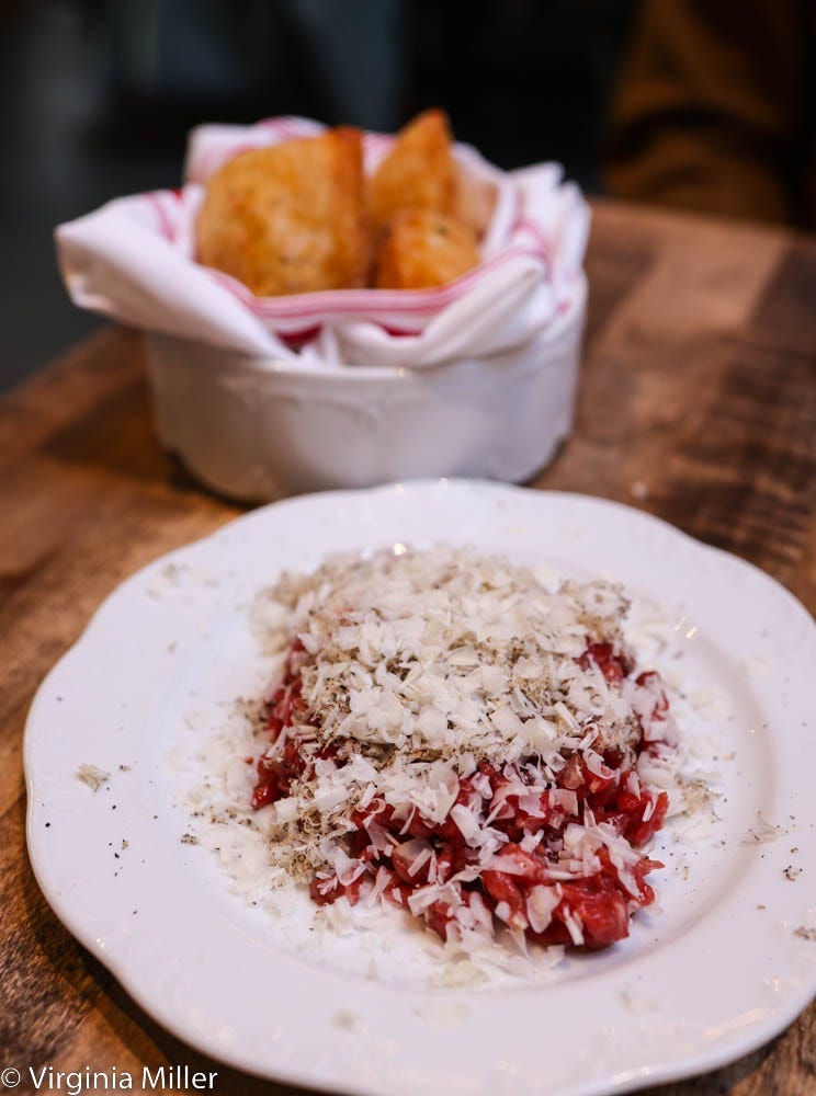 On the meaty-decadent side, rare, raw dry-aged Flannery beef forms the base of their carne cruda, a ridiculously good steak tartare, dressed in summer truffle, aioli and shaved 24-month aged Parmigiano Reggiano (the unparalleled, real stuff). It’s a superlative tartare and one of the best steak tartares ever, out of countless hundreds I’ve tried, even better scooped up with their house focaccia. The yin to this crudo’s meaty yang is their seafood crudo: silky, citrus-cured salmon layered in lemon, olive oil and an oh-so-welcome shaving of fresh horseradish adding bite and brightness.