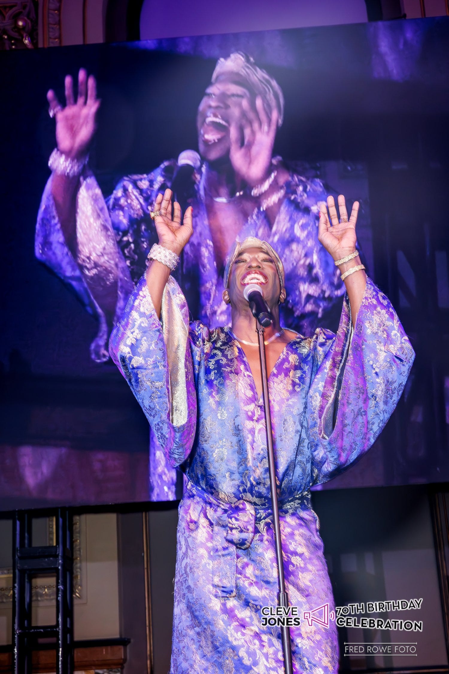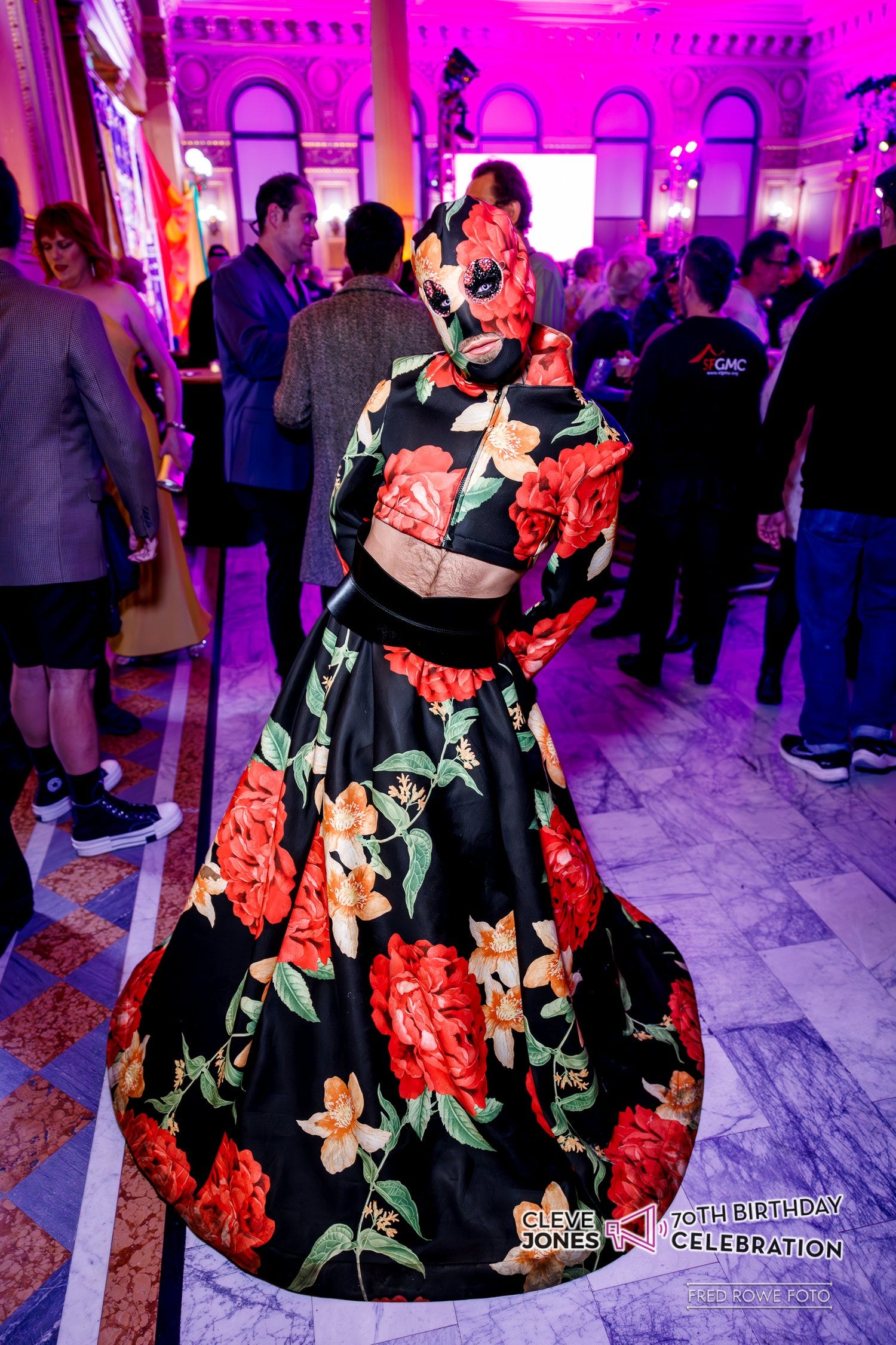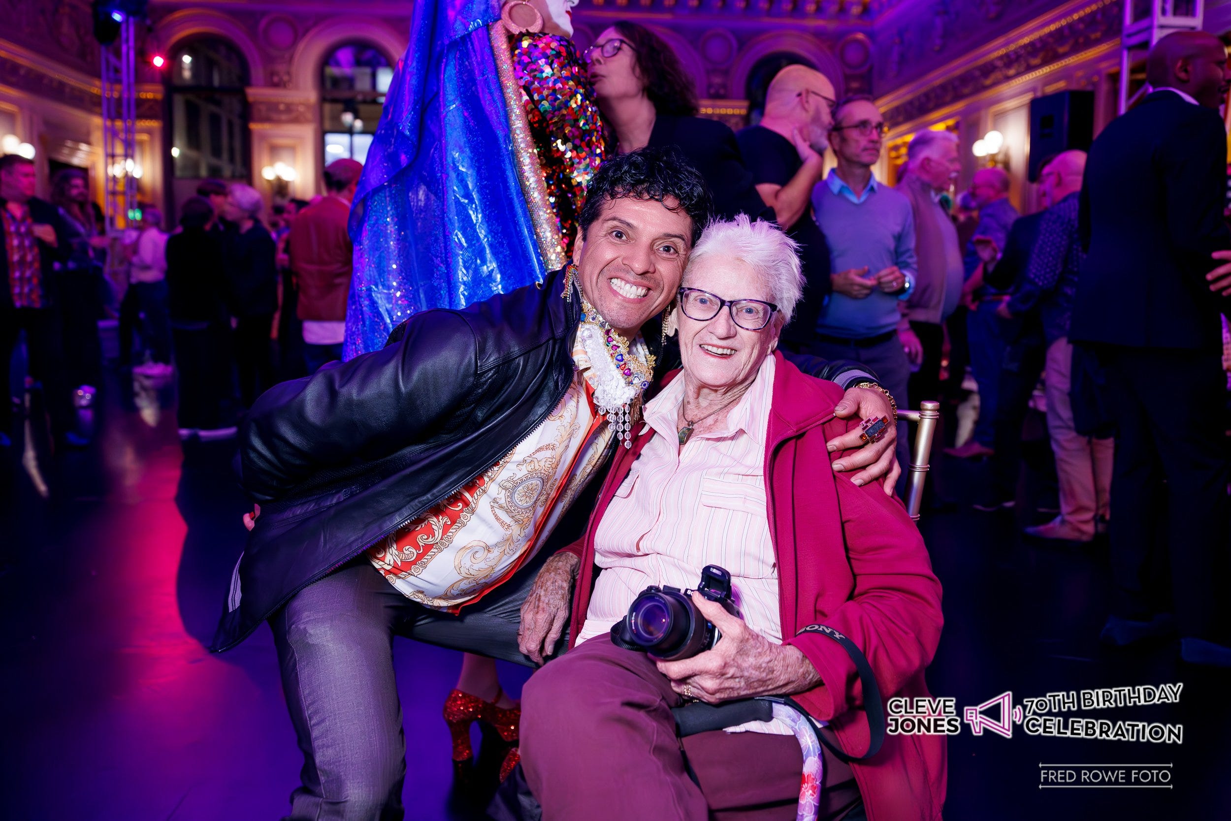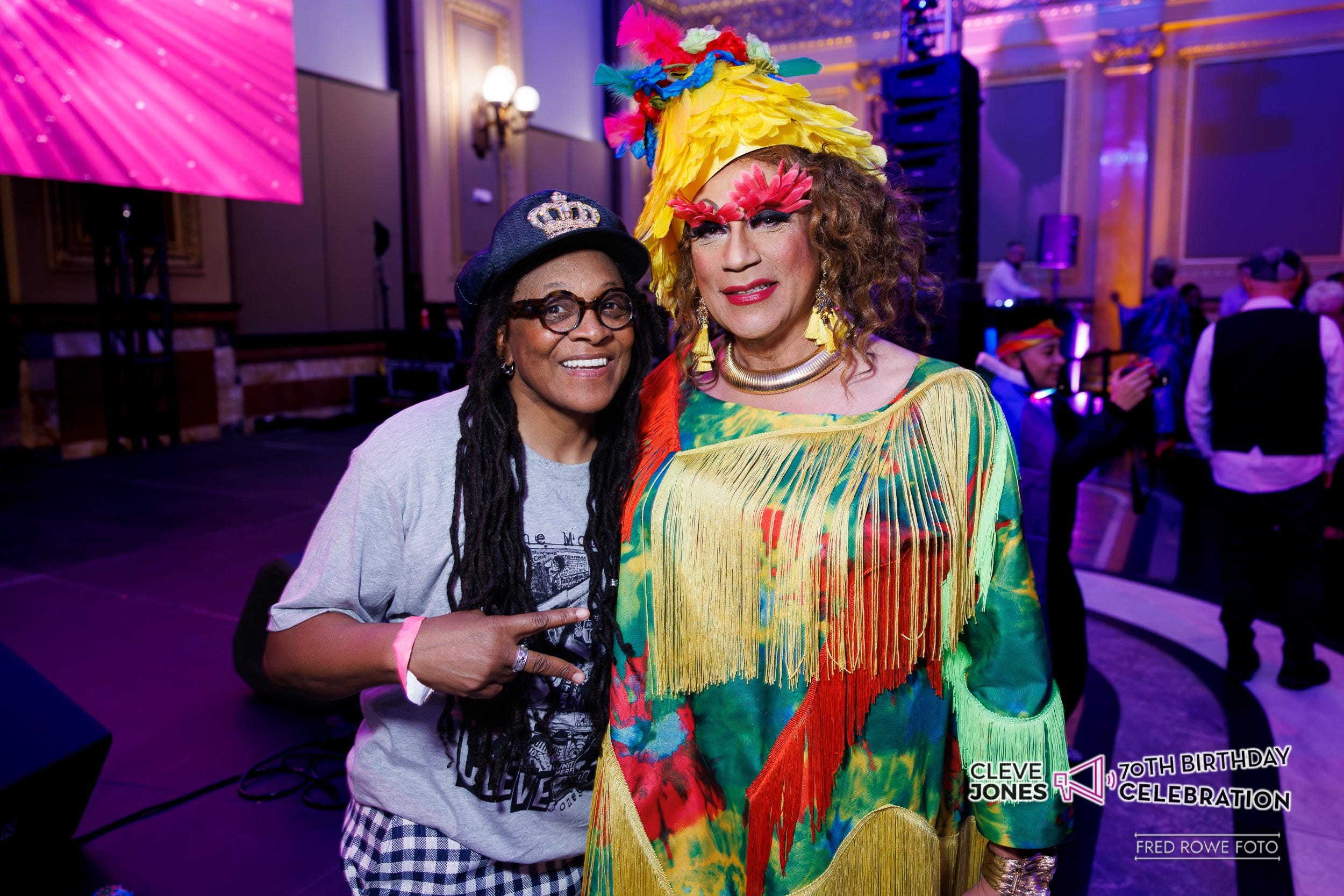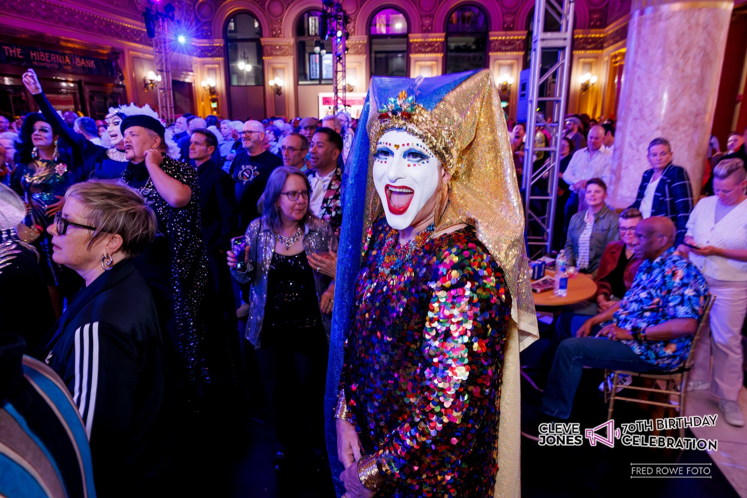 The glitzy night at Hibernia Bank was billed as a party, but many times it felt more to me like a public television special that showcased local LGBTQ+ community leaders. Cleve kept his promise to keep speeches to a minimum, but in their place we saw throngs of drag queens, leather daddies, choir members and activists march to the stage to take a bow and pose for a photo. The successive appearance of each group, one after the other from the AIDS Quilt, Gay Men’s Chorus and Comfort & Joy was an effective display of all that Jones has touched.