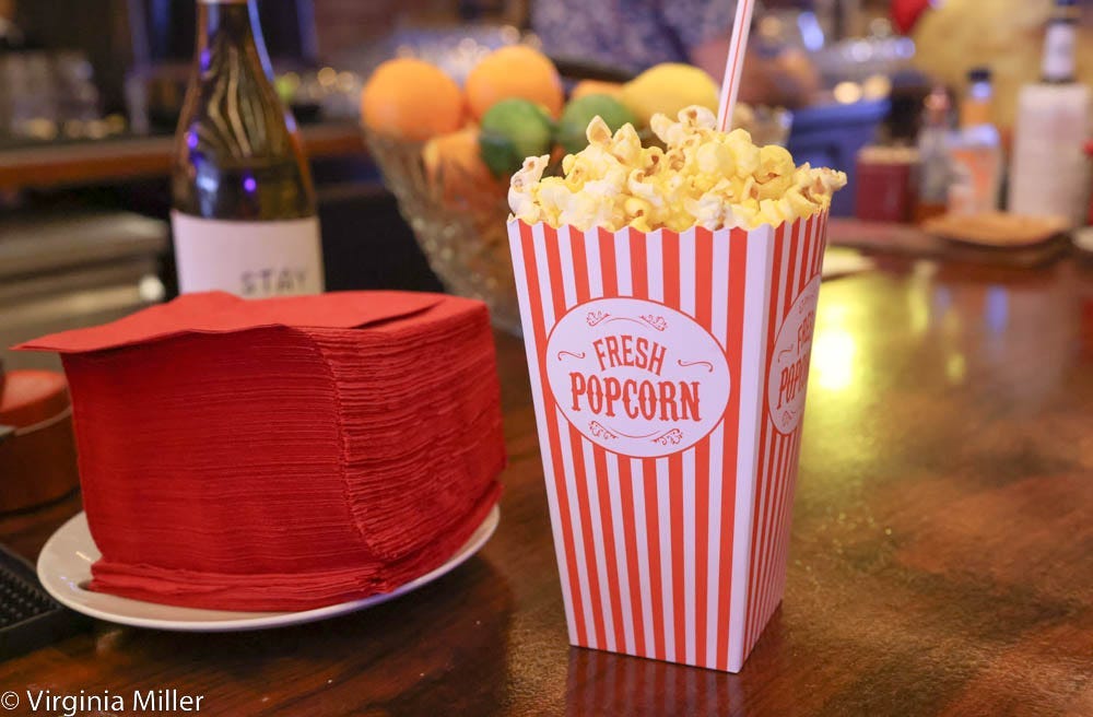 Cocktails continue the fun. Though sweet, Netflix and Chill is an immediate crowd-pleaser served in a popcorn box topped with popcorn, with a lush base of butter-washed bourbon and amaro, lightened by tamarind and elderflower soda. The coconut-pineapple-malty genever Cubby Colada slushy is served in a honey bear bottle.