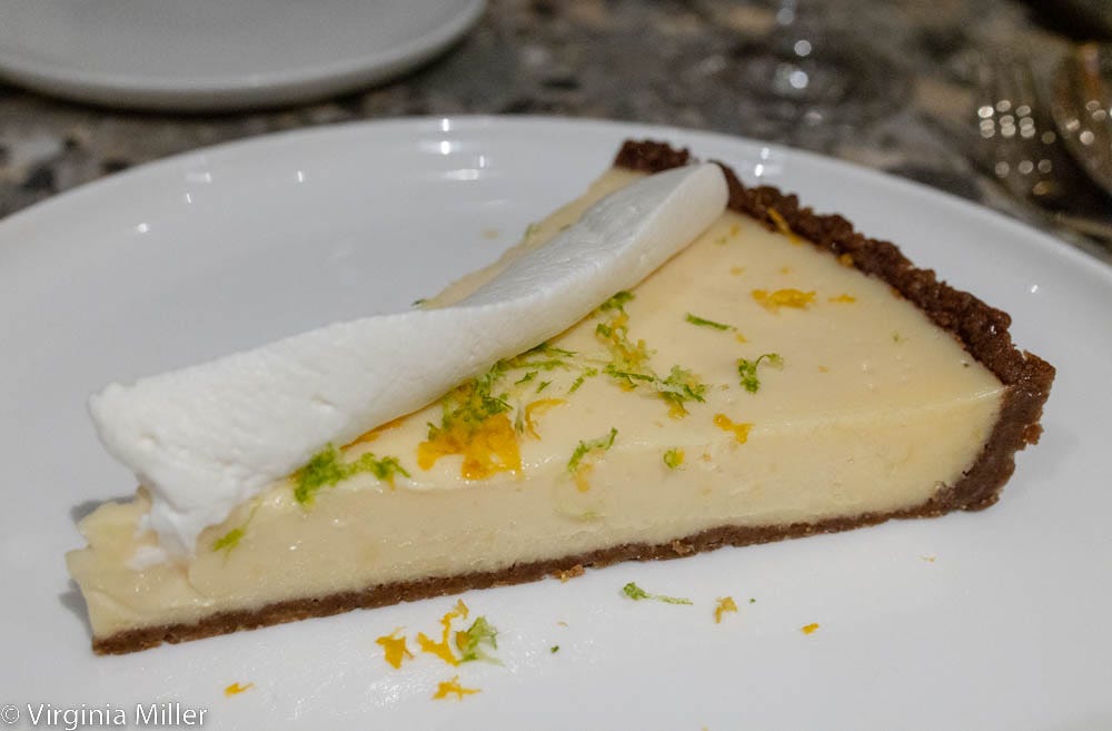 Ahi tuna crudo is typical, yes, but this version is enlivened with caviar, espelette pepper, sesame seeds and pickled Fresno chiles. Panko-crusted short rib bomba balls ooze Cowgirl Creamery’s Mt. Tam cheese, dipped in smoked chili aioli. There’s a solid muhammara (classic Middle Eastern dip of roasted peppers, walnuts, pomegranate), embered honey, multi-colored carrots in dill creme fraiche, and a silky Ora King salmon entree with sunchokes and arugula in basil oil and lemon beurre blanc. Maple Leaf Farms duck confit over polenta lush with mascarpone and shoyu (soy) glaze was the standout savory dish: sheer comfort. Lemon icebox pie was the other top dish of pitch-perfect crust and blessedly bright tart-sour goodness.