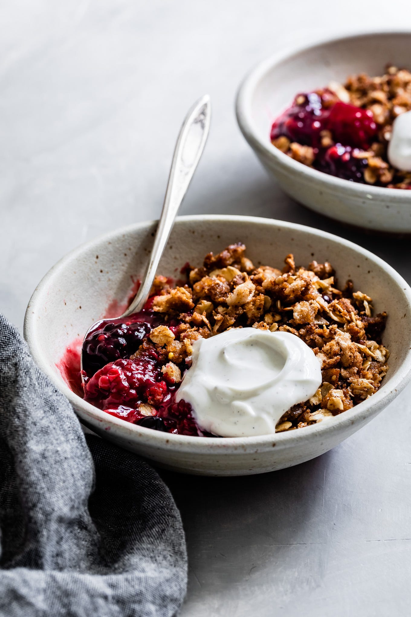 Read Sarah’s full recipe for stovetop gluten-free berry crisps.