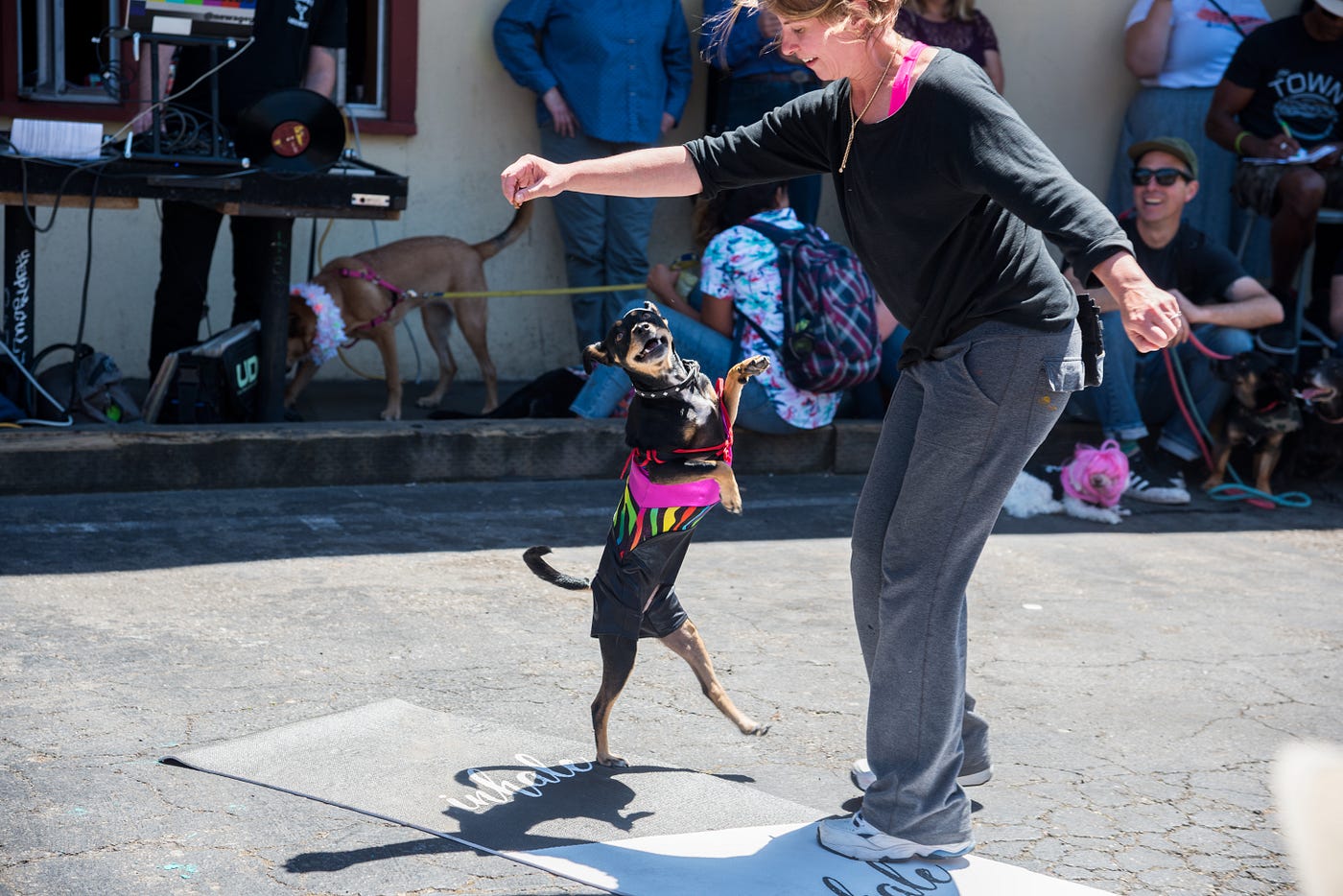 After the pageant, the humans in attendance voted for their favorite dogs using the raffle tickets benefiting the Berkeley Humane Society. One fan purchased $200 worth of tickets to vote for her favorite dog, which ultimately won the crown. With his dyed red beard and “Biker Dawg” leather vest, Luigi was truly dressed for success.
