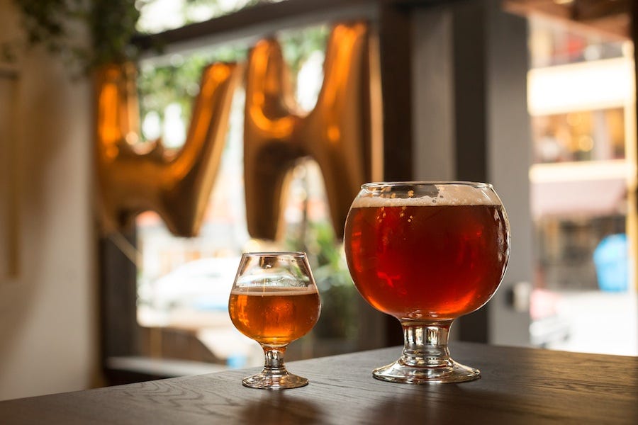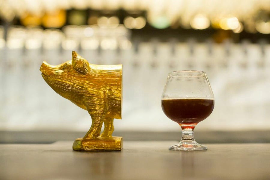 And why yes, that large glass on the right is Hogwash’s spin on a German beer boot, the 55 oz “Hog-Goblet.” It’s a perfect choice if you’re on a serious solo mission or are looking to have a little more fun with friends. The Hog-Goblet is a prime example of the vibe Hogwash is looking to create. “Beer should be fun. This is a gathering place where everyone can come in and have a good time,” said Thompson.