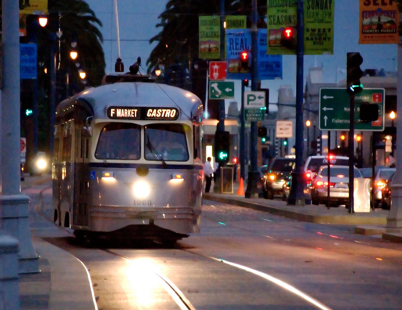If you’re playing tour guide or have some time to kill, the cable cars and the F Market streetcar are sure to lift your San Francisco spirits. The F is part of the city’s lines of heritage streetcars and runs from the wharf to the Castro for a standard Muni fare (with transfers). The streetcars are refugees from dismantled systems all over the world, and the original home of each car is listed on the inside.