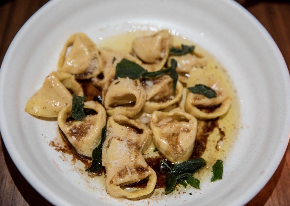 Marinated beets showcased both earthy red beets and silky-sweet golden beets over creamy ricotta, under a dusting of ricotta salata and basil. We moved on to pasta when what I’ve long loved of McNaughton and Pollnow’s cooking came into focus. Comforting tagliatelle alla Bolognese took us right back to our weeks in Italy’s Emilia-Romagna region, but even more so with their tortellini di zucca: tender tortellini stuffed with roasted autumn squash, under layers of brown butter, sage, and aceto balsamico vinegar.