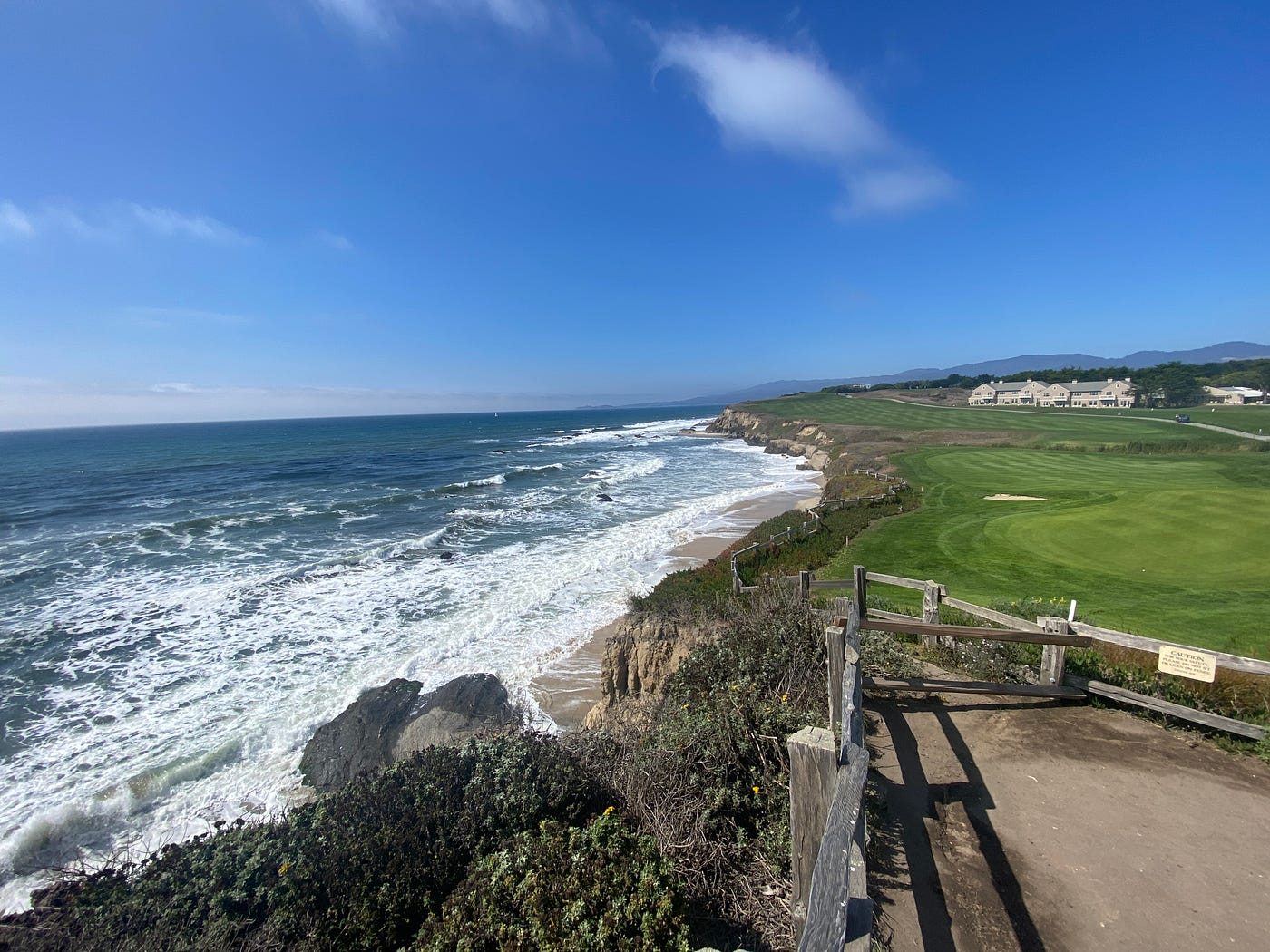 Half Moon Bay (HMB) is a charmer of a beach town, surrounded by rich farmland growing produce, pumpkins in the fall, Christmas trees in the winter, an easy respite barely 45 minutes from the center of San Francisco. HMB’s cliffy stretch that cradles The Ritz-Carlton, Half Moon Bay transports me — as does Point Reyes National Seashore just north of the city in Marin County — straight to Scotland, Ireland or England. Its lush green hills and farms rolling into sand recall magical coastlines I’ve cherished in all three of those countries. When you add in Ritz-Carlton HMB’s nightly tradition of bagpipes at sunset on the cliff (my favorite thing about the hotel), the sun casting its glow over the ocean below, the Scotland element becomes obvious.