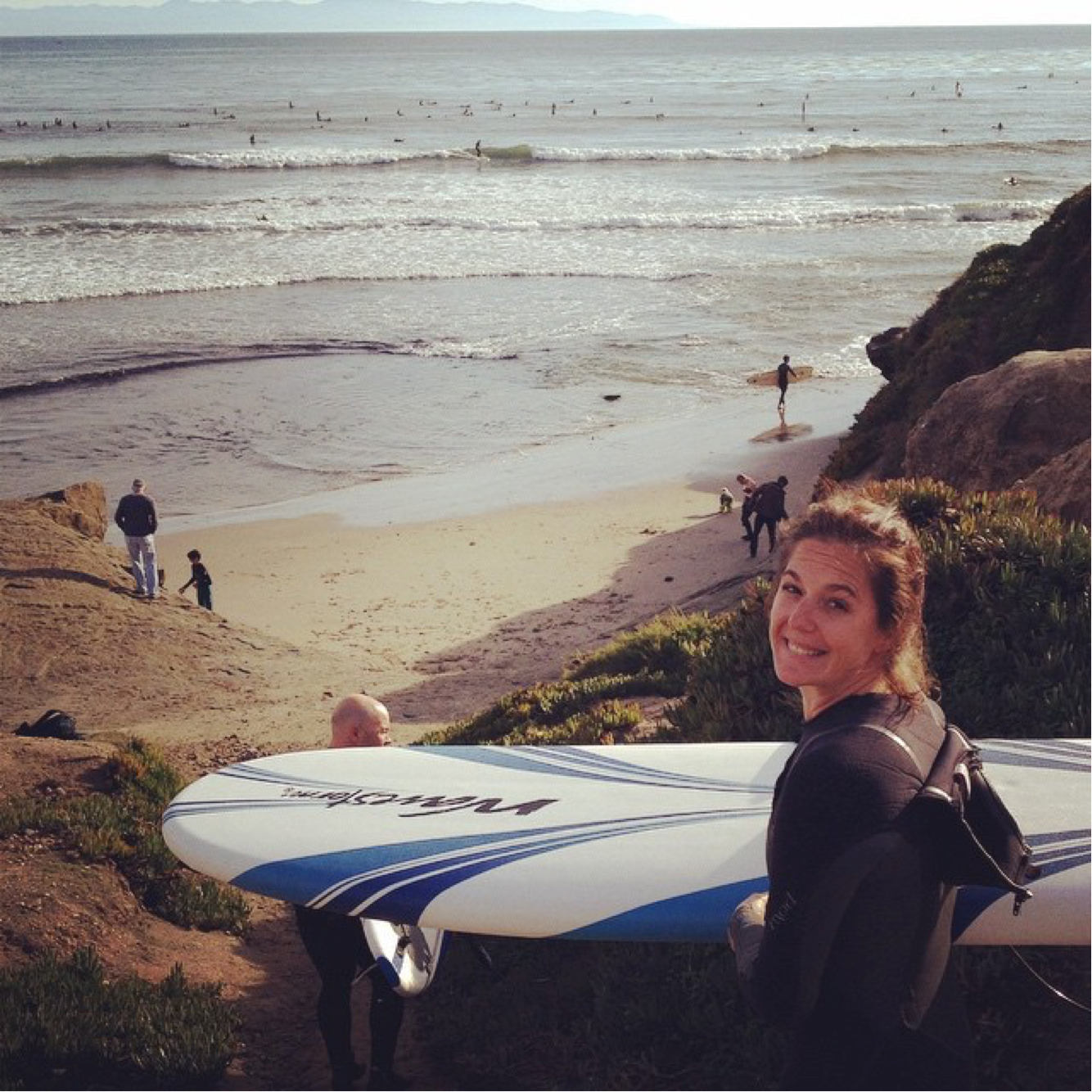 See that solitary green house on the cliff between the Hook and Pleasure Point? That’s Jack O’Neill’s house. Jack O’Neill is famous for inventing the wetsuit back in the 1950s. He’s a renowned surf legend. O’Neill’s original surf shop and wetsuit outlet can be found on 41st Avenue.