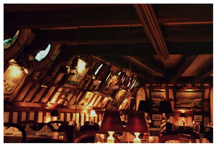 It feels like a moment of reckoning and I give in and tell him the truth — that I simply wanted to meet him. It’s hardly a journalistic answer, but he seems taken by it. I tell him how I’d admired the Island for years and that Frankie took me here for dinner before proposing on the Balclutha in the middle of the night. His eyes light up when I mention the tall ship and we start talking about the Maritime Park, what I do with the kids there and how he likes to sit there on Sundays and look at the ships. The dining room is filling slowly and he asks if I’d like to go up to the Tahiti Room where we can talk with less noise.