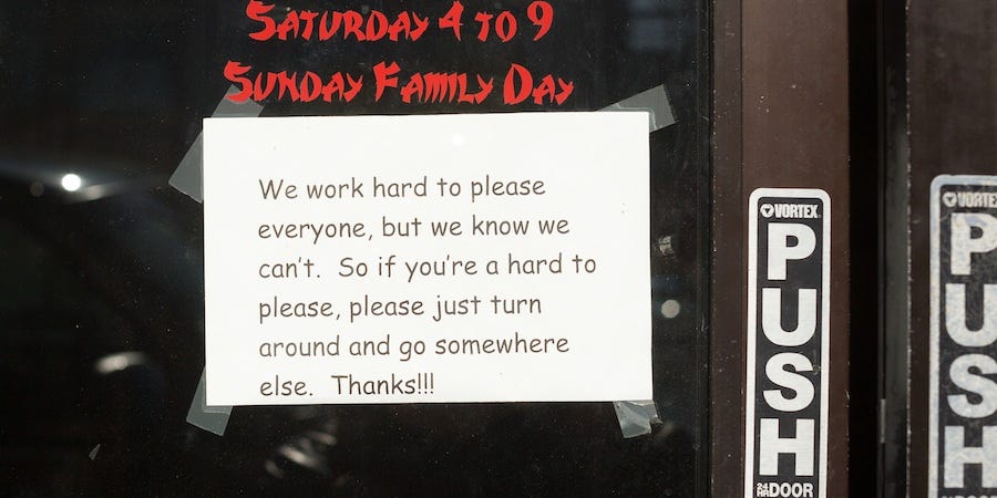 Frustration with customer and staff attitudes seems to be a common theme with this place among Yelp reviews, but personally I love a restaurant that tells folks straight up to take their BS elsewhere.